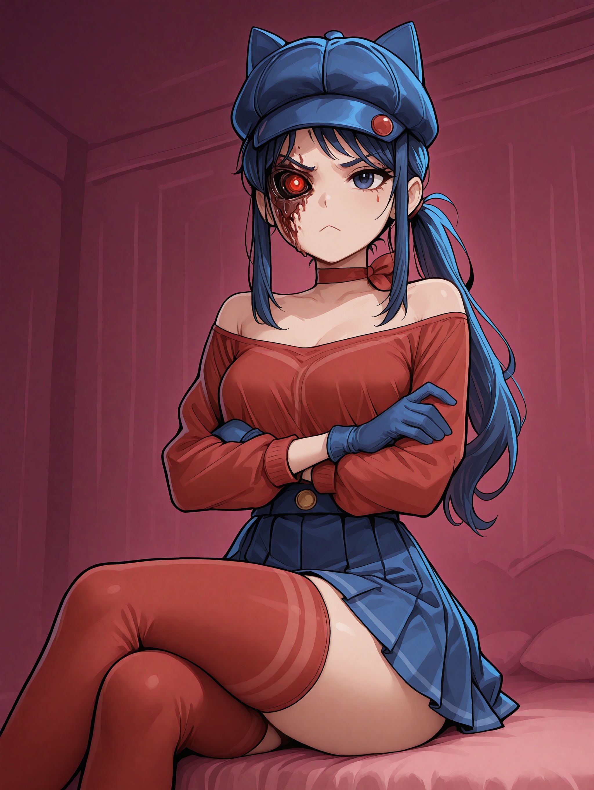 Единственная Мита, у которой реально чёрные глаза. Но это неточно - её модельку я не рассматривал в игре так подробно. Вполне вероятно, что у неё глаза такие же, как у Кепки.