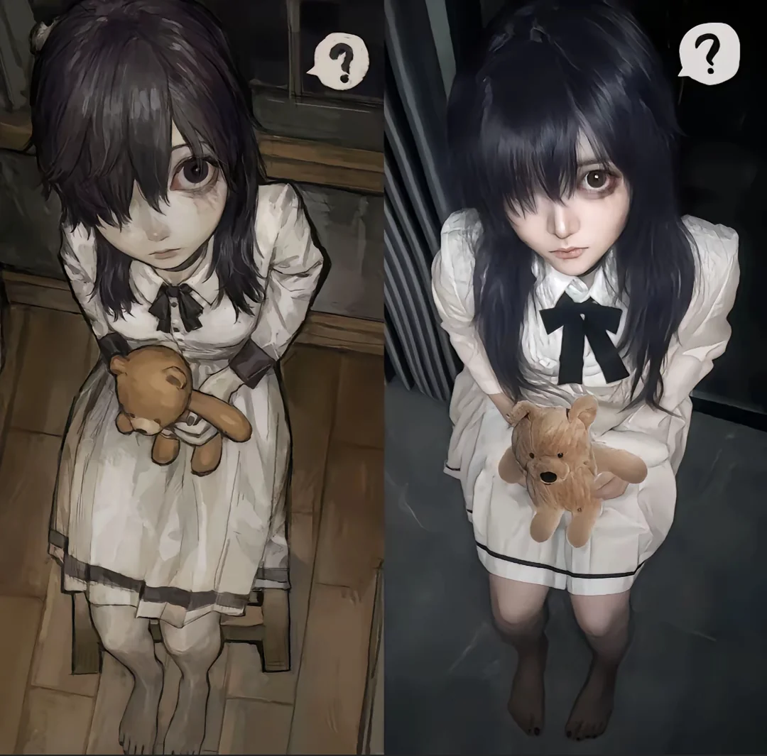 Подумайте сами - ты вытаскиваешь из головы образ идеальной вайфу и оживляешь его голосом реально существующего человека. Как потом воспринимать этого человека? Хочешь-не хочешь, но ассоциация возникнет. Ты можешь нарядить сотню девушек в одежду и парик Миты-Кепочки, попросить их изобразить Кепку или отыграть сценку из игры, но даже при максимально похожей внешности ты и близко не получишь харизму и вайб Кепки. А теперь представь - какой эффект будет, если нарядить в Кепку ту девушку, которая дала ей голос, и попросить оформить шутку про выгонятор мышей? Собственно, в интервью Либертина попыталась изобразить внешность Кепки, но очень скудно и без стараний, мы ж бля не фильм снимаем тут, а интервью даём какому-то ноунейму. Но даже так, без парика, нормального мейка и атрибутов она создаёт у тебя ощущение, что перед тобой Кепочка, а не какая-то переодетая блядь-косплеерша. Только излишне серьёзная, разве что, хотя её "аррр" в одном из моментов интервью было забавным, типично-кепковским. Всё потому, что голос - это очень значимая часть личности, и в нём, как минимум, заложено отражение характера, через тембр и интонации. Короче он важную роль играет в восприятии. В данном случае идентичный голос > максимально похожей внешности, просто потому что девушки с идентичной внешностью не существует, ведь персонаж Кепки нарисованный и не имеет референсов ирл.