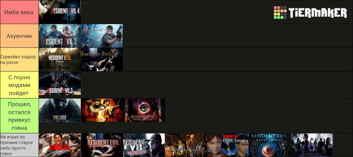 >>50290117 Долбаёб и вот почему >Рез всё. Когда? Давай обсудим. Почему? Давай обсудим. После Resident Evil 3 Nemesis >Но я примерно почувствовал, Кого ебёт, что конкретно ТЫ там что-то почувствовал? >что с пятерки серия понеслась в говно Просто развитие идей 4-ки. Серия не понеслась в говно, она стала другой игрой просто. >Дизайн персонажей Шева охуенная >Откровенно всратый сюжет, бессмысленные диалоги Ты понимаешь, что ты вприцнипе описал серию резидент ивил? Она всегда сюжетно и по диалогам была игра уровня b, в хорошем смысле этого слова, начиная ещё с Jill Sandwich и Master of unlocking > кривые игровые механики. Какие конкретно игровые механики тебя не устроили и показались тебе кривыми? >Рез - просто дойная корова, чье вымя издрочили до крови жадные руки манагеров и боссов индустрии. Чем это плохо, если корова даёт пиздатое молочко?