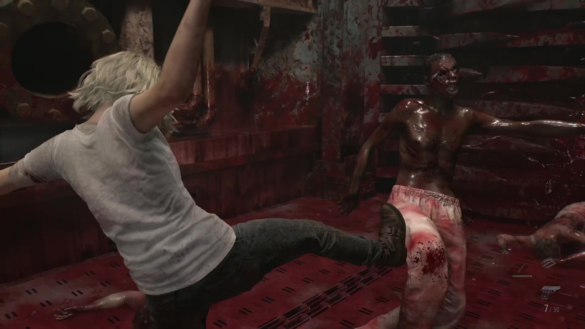 Вообще в игре много спорных моментов. Зачем было делать ролик с бегством с мамашей интерактивным? Зачем вообще линейку мелкой делать с прятками под кроватью? Еще во второй части бесила эта часть игры с Шери. Все эти возвраты в Ракун сити. По нему же ядерка ебанула, а там дома стоят! Там же радиация. Нет, все там ходят и похуй. Фан сервис на фансервисе дерьма. Кастрированный полицейский участок. Покатушки на мотоцикле фактически не управляя им с бесконечным пистолетом пулеметом в условиях когда каждый патрон бывает экономишь. Бой с тираном котором оказывается можно топором или пистолетом, обычным оружием просто вскрыть сердце. И чего Леон этого не сделал в двушке, а ему понадобилась ракетница? Не ясно. По моему нигде не сказано что уничтожение сердца убивает Тирана, это его слабое место - да, но не смертельное. Он все равно восстанавливается и мутирует дальше. Только разрыв в клочки всей верхней части из мощной ракетницы не дает ему восстановиться.