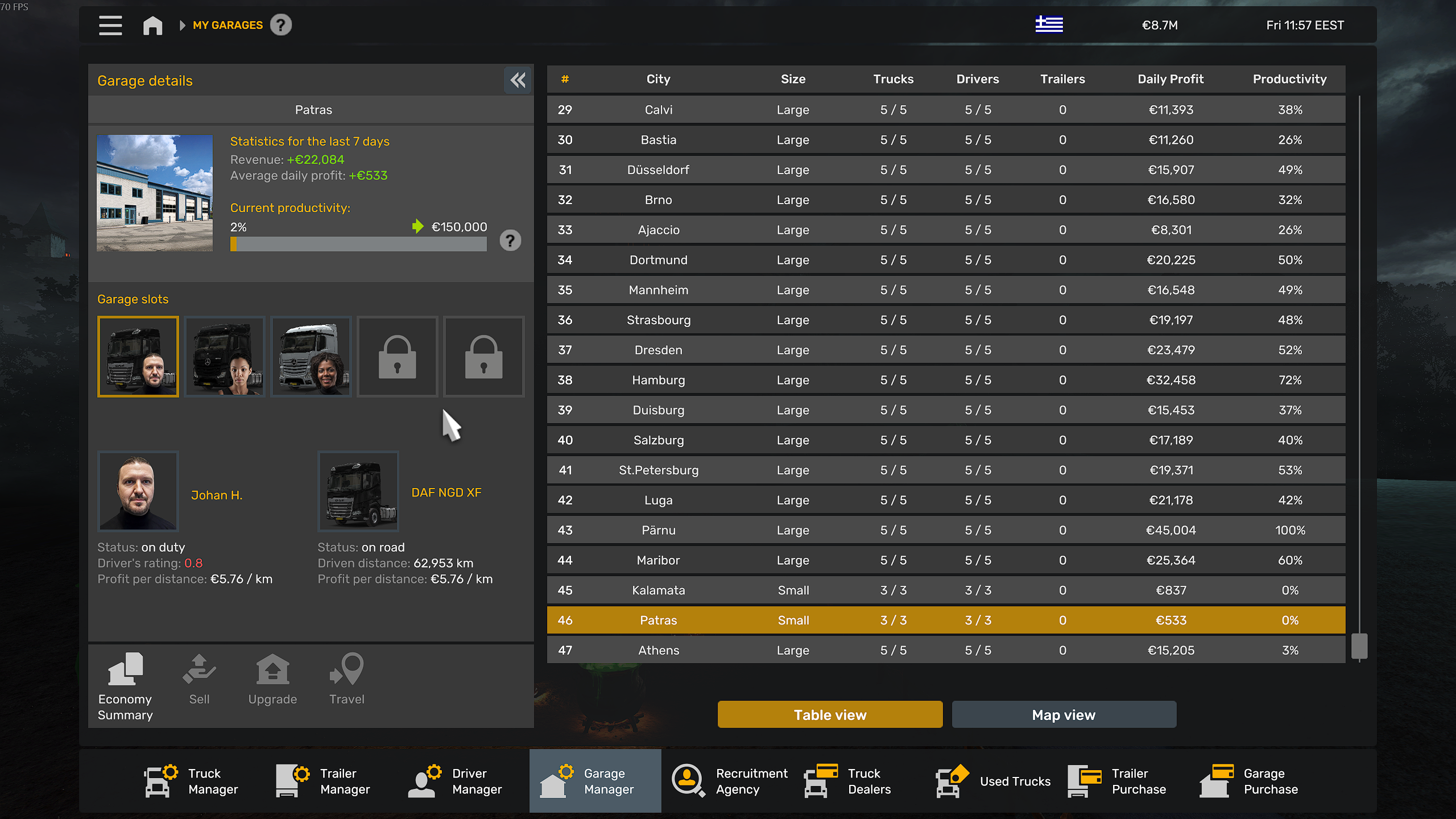 >>50375993 Начал новую игру недавно, взял первую бу фх6 вольво, докачал до 500 мотора, катался и в хуй не дул, свист турбины бесил только. Даже оверсайз покатал какой-то и вроде нормально. Решил перекатиться на мужика, а там самый большой мотор открыт только 470. Ну думаю, разница небольшая, момент такой же, сойдёт. И проебался с коробкой чуток, не посмотрел. Пару рейсов скатался, все хорошо, пердит приятно, приборы удобные, заебись короче. И тут контракт из Неаполя в Афины с дорожной фрезой на 40т, а я в Греции не был ещё, но очень хотел. Короче блядь я проклял нахуй все, жопа сгорела от горок, зарекся короче больше 20т брать пока мощнее мотор не поставлю. Но опыт интересный, да.