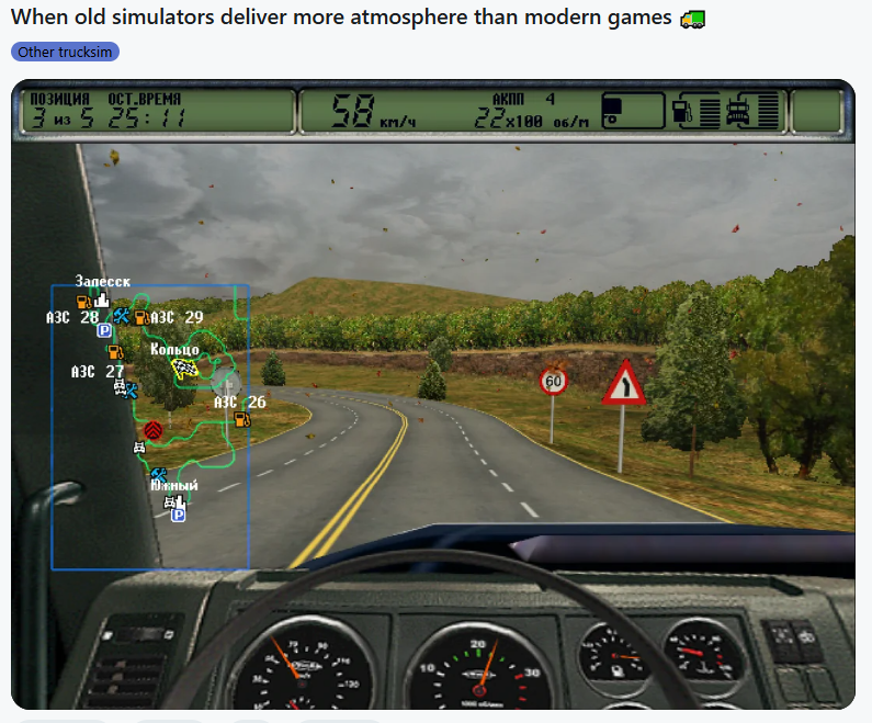 Признавайтесь, кто смотрит Алекса Брежнева?) Я бывает залипну на часик, видосы про дальнобой у него ламповые. Он конечно балабол, но съемка качественная и виды бывает завораживают. Аж захотелось поиграть Ats/Ets, но какой же там стремный графон для 2025 года. Сделали бы обнову - hd текстуры пак.