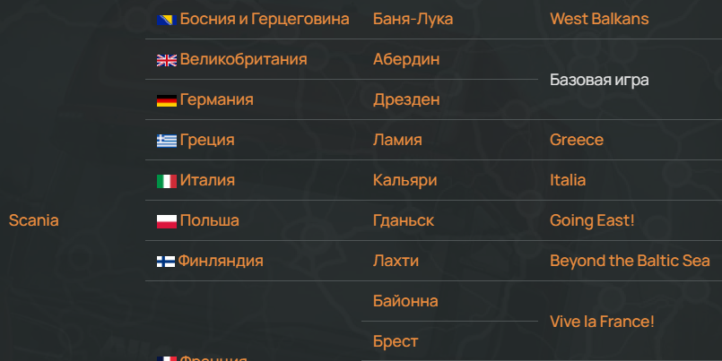 А, всё, разобрался. Проблема в том, что нужно посетить магаз сцаниа, после этого грузовики станут доступны для покупки. Так, а карту расположения дилеров сцаниа где найти?