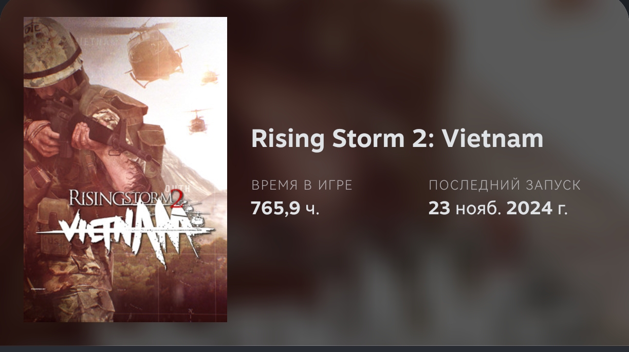 Кто там базарит на мою любимую Rising Storm 2 Vietnam?! Это отличная игра которую недоделали из-за того, что Tripwire Interaction начали хуйней маиться и вместо развития геймплея начали с Antimater Games требовать DLC скинчики и другие DLC. Вспомнить только Green Army Man. Ох как же я кайфовал от этой игры. Карты там ахуенные, тем кто говорит, что в Красном Оркестре были карты лучше - готов нассать на лицо. Да в оркестре были красивые карты, но все они сводились к базрейпу. Я вообще RS2V случайно купил. Залипал в KF2 и ради скинов для KF2 купил за 300 рублей. Как же я залип в неё. Благо я купил её когда было 5к игроков в среднем. Просто шик а не игра. Напалм, кобры, хьюики. Ммм. Кто Resort не штурмовал - тот боли и унижения не знал. А какая классная карта Hue City, я там инженером всю карту сжигал. В этой игре реально были карты которые надо штурмовать только топ тимой, типа, Resort и Saigon. Оружия просто дохуища было. Фракций тоже. Хотя с Австралийцев с их L1 я ваще плевался нахуй, потом конечно выпустили патч и добавили им М16, но пошли нахуй эти Австралийцы. Вон АРВН ваще самые шикарные были, особенно инженер с BAR который ваншотал. Хотя круче НФОЮВ и ВНА небыло никого. У них был АКМ и Мосинка. Мосинка это вообще пиздец. Без ПУ ебашила за 500 метров метко. Двушка ваще имба которая хуярила на 100+ метров. ППШ бля. РПГ-7! Пикрил 2 моя стата на 11.04.2020 250+ вертолетов! 250, Карл. Причем ачивку за 100 сбитых вертолетов имеет всего 0.4% игроков, а у меня 250+ Я просто с РПГ-7 там все уничтожал. У меня ни один вертолет спокойно летать не мог, а если небыло РПГ то я с ДШК по карте бегал. Я однажды на Hill937 там захуячивал хелики, что они отказывались летать и материли меня в чате. А еще я принаровился уничтожать пилотов прямо на взлетной площадке. Вот они выли.