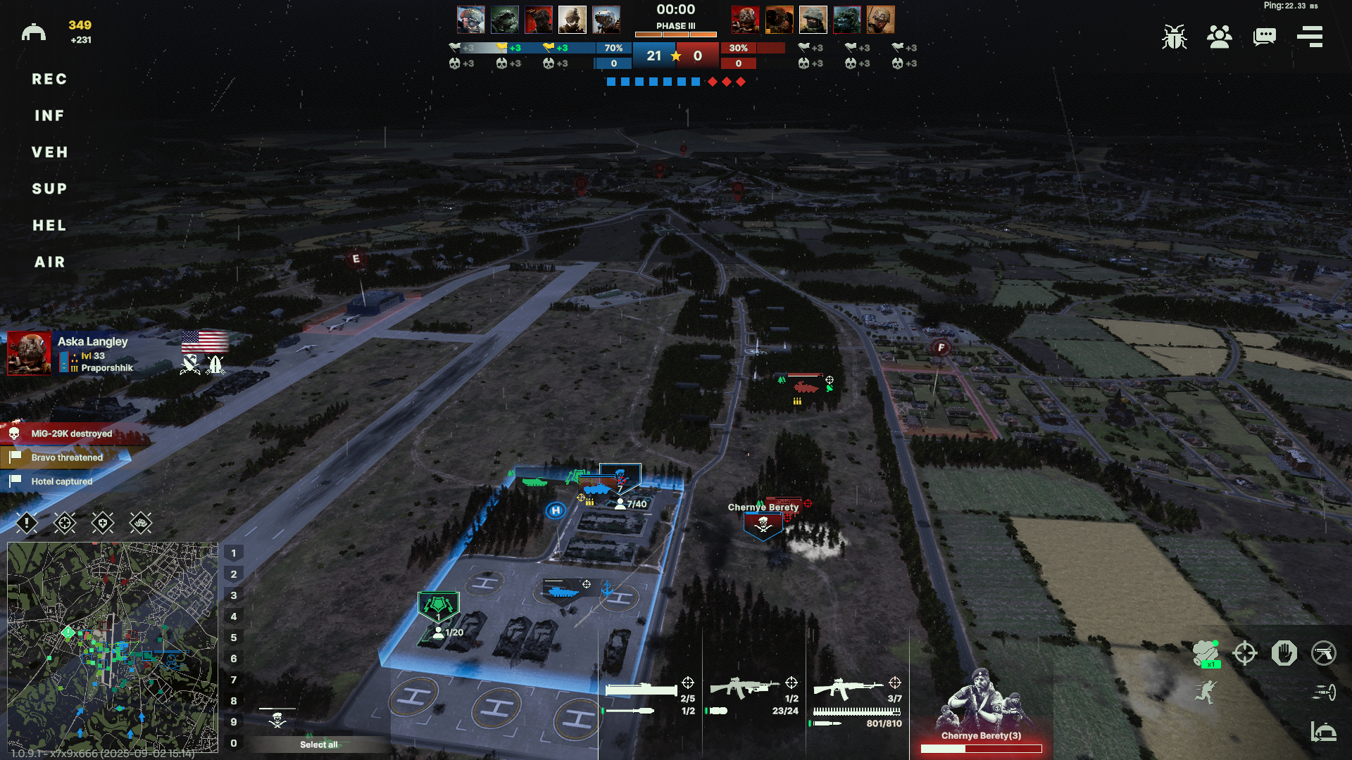 • Исправлена проблема, когда время восстановление юнита могло сбрасываться после реконнекта в игру; • Исправлена проблема, позволяющая создавать команду из смешанных фракций для стандартных и пользовательских матчей; • Исправлена проблема, позволяющая стрелять юнитам, находящимися за игровой зоной. • Исправлены дополнительные случаи, когда игрок мог получать внутриигровой доход, несмотря на то, что он был отключен от игры. • Исправлена проблема синхронизации урона по юнитам, если юнит был загружен из дома в транспорт; • Исправлена проблема, из-за которой на UI не отображалась информация о том что игрок был забанен; • Исправлена проблема, из-за которой нельзя было вернуться в редактор, если игрок запустил сценарий из редактора и нажал "Перезапустить миссию"; • Исправлена проблема, из-за которой ПВО со статичным радаром (S-300, S-350, Patriot) не могло двигаться если находилось в стрессе; • Исправлена проблема, из-за которой нельзя было написать текст в окне Репорта если игрок нажимал на Enter; • Исправлена проблема, из-за которой при создании деки UI мог некорректно отработать.