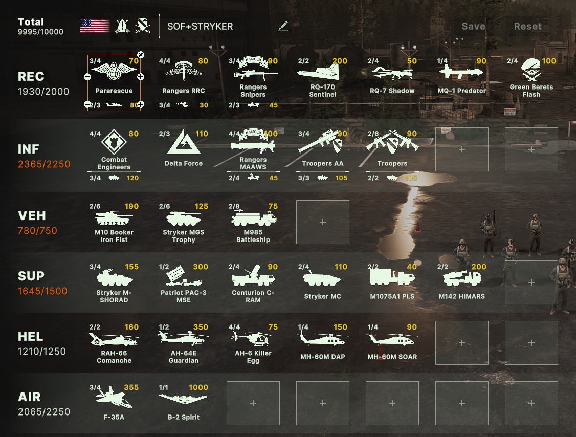 Там очков не хватит взять всех юнитов. Для спама на захват точки лучше подойдут инжырнеры +ассаулты. Для закрепа самый топ будет КААТ тоу, потому что их ебаный пулимет делит на ноль любую пехоту.