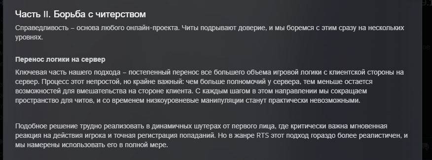 >перенос логики на сервер Ну да, ведь щас игра ломается через читинжен. И если не охуевать и сделать себе условные +50/100 инкама или бесконечный боезапас у пары ключевых юнитов аля птурщики, этого никто даже не заметит. >инфляция Абсолютно не является проблемой ЭЛО рейтинга. Смотрим условную Доту.