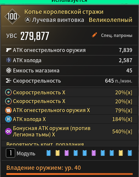 >>50415332 Мне вчера за весь день выпал только один раз рыжий стат на таких модулях, с учетом бонуса на 10 ящиков в новом данже. Я так понял, что 3 рыжих, да еще нужных стата, это просто пиздец фантастика. В рамках больше шансов самому выбить нужный ривен, чем здесь что-то наролить подобное скринам. Надо, чтобы эту систему поменяли на более человечную. А сейчас в массе своей будет что-то как на скрине. Даже желтый стат это редкость.