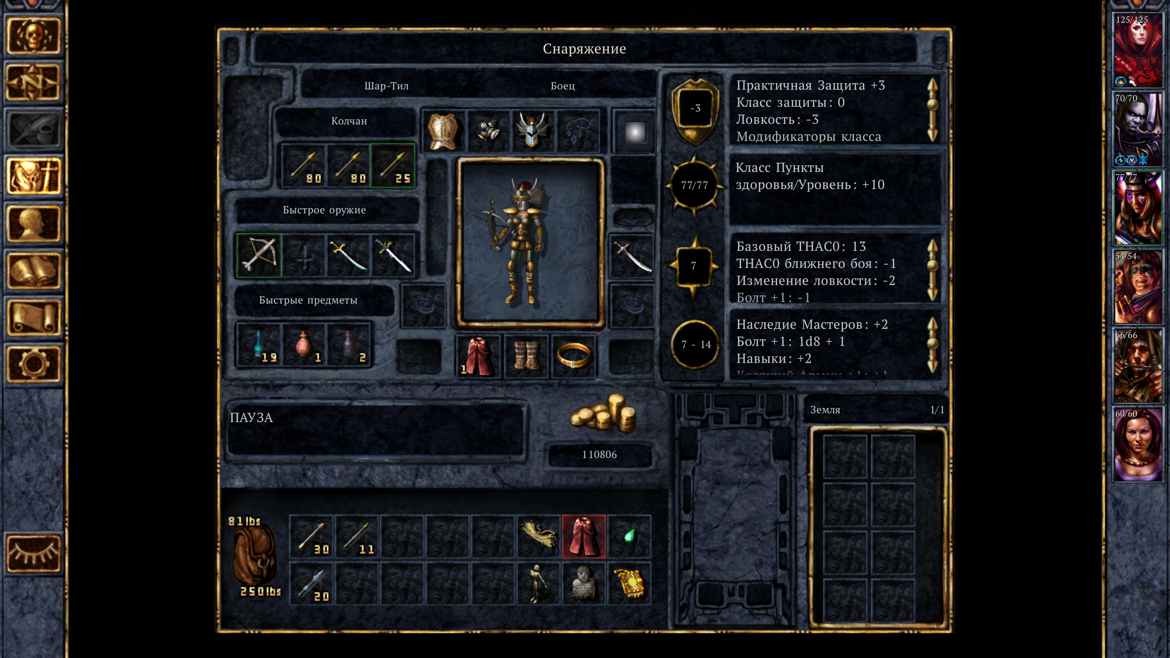 Сделал себе файтера с дуалами на цепах, чтобы на 9 уровне задуалиться в клерика. Со всеми клериками вечно какая-то проблема в игре, решил самому впервые за него поиграть. Кагайну нашёл пояс силы и перчи ловкости, он тоже на дуалах будет - с двумя топорами. Машина, а не персонаж. Для разнообразия сделал его дварфийским защитником. Джахейру планирую романсить во второй части. Её сделал шаманом. Странные от класса впечатления. С одной стороны на две головы слабей её обычного воина/друида, но с другой стороны - какой же кайф играть без запоминания заклинаний. Эдвина сделал соркой, опять для незапоминания заклинаний. Внезапно его кольцо на +2 спелла работает и с классом сорки, так что получилась имба. Хотя я считаю, что для мага оно сильней. Впервые играю с ШарТил. Сделал её следопытом-лучницей, по какой-то причине СКС не заметил проблем в том, чтобы дать ей класс, несоответствующий её мировоззрению, хотя там два режима: с соблюдением классовых ограничений и без них. У меня включён первый. Сафана - единственная, кого я не трогал. Вор в СКС очень нужен. Хотя зачем играть вором, когда можно играть мультиком воином/вором? Не знаю, может поменяю на кого-нибудь. Вы меня спросите, зачем мейнить клерика, если я не люблю запоминать спеллы - я что ебанутый? Ну видимо да.
