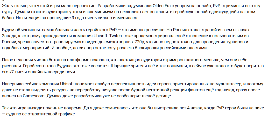 У меня искренний вопрос: почему некоторые так сильно стремятся обосрать Olden Era? Ну то есть, вы же в неё, судя по всему, даже в плейтесте не играли, а играется она на самом деле бодро. Я, конечно, надеюсь, что это не финальный результат, но даже сейчас это вообще неплохо.