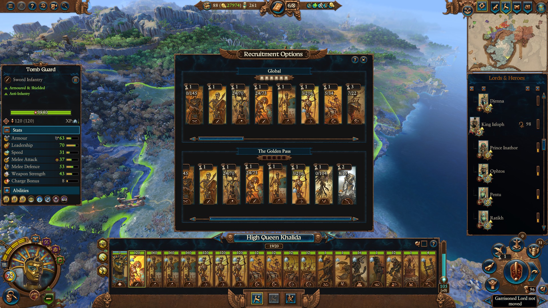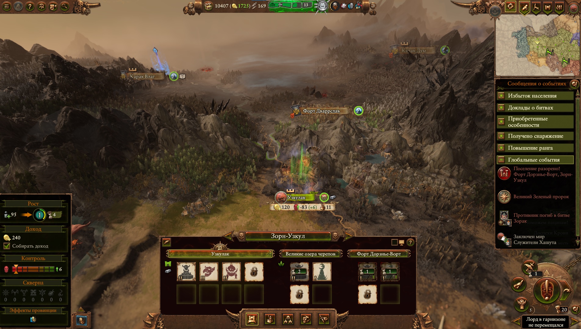 Армия состояла из Морати, Сюзерна, 8 пиратов черного ковчега шнепперов и 10 темных панцирей щитов, второй лорд маг огня. Под конец нанимал теней, но они очень дорогие, я не мог позволить себе экономически их.
