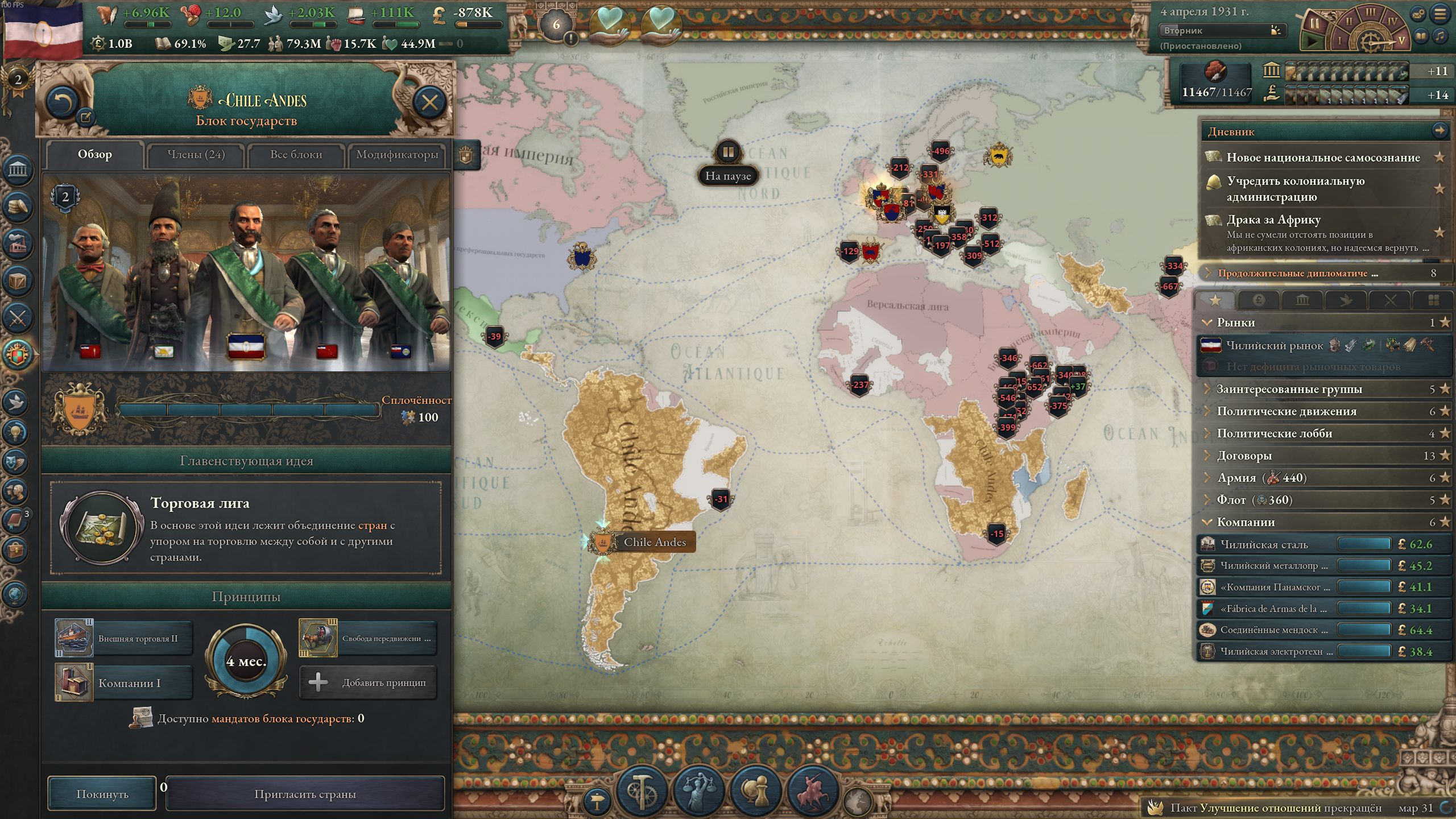 За андские Чили прикольно играть. Разок обанкротился, мультикультурализм принимал десять лет (и принял только к 1910 г), постарался со всеми дружить. С мажорами вообще не воевал.