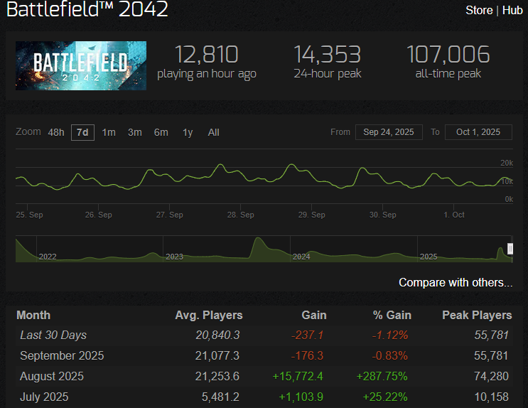 >>50251746 >А откуда там полно игроков 10-20-30 левелов? Еапидоры довольно часто делали скидки в этом и прошлом году и старые части можно было за $5 с премиумом купить. Плюс, на волне бф6-хайпа много залетных пришло.