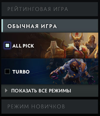 самый норм это турбо но в турбо есть динамика из-за чего некоторые герои выпадают. Допустим в обычке ты спокойно сыграешь за дарксира. В турбо же у героев будут все ресурсы чтобы тебя убить уже из-за чего твое ранее преимущество сведется к нулю.
