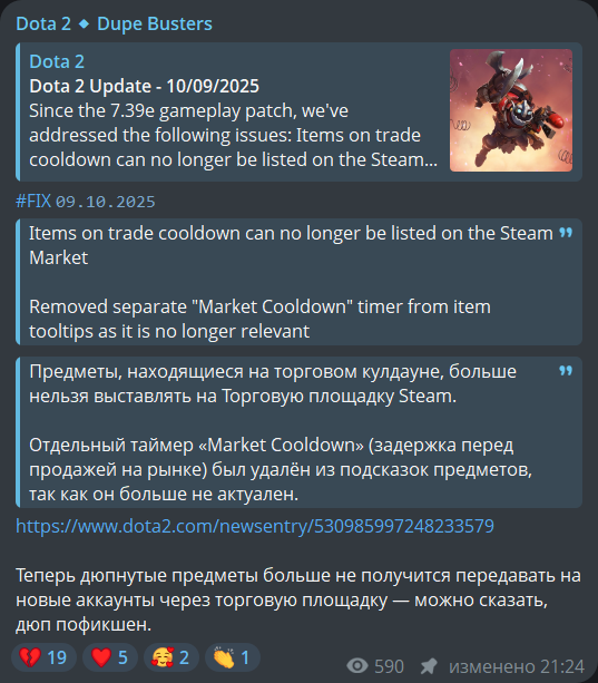 ДЮП В ДОТЕ: Крах экономики коллекционных предметов, рисованные шмотки для женщин от сотрудников Valve, китайцы уничтожают рынок, как достать багованные шмотки на ТП за 200 рублей и другие детали расследования в ролике https://youtu.be/xavj5crc5cc