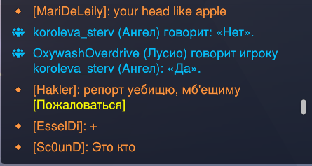 — если ты вежливо просишь меня свичнуть героя, то получаешь блок + репорт, если невежливо, то ещё и эвейд в придачу; — если ты просишь меня присоединиться к войсу, то получаешь блок + репорт; — если ты написал гг в конце матча, то получаешь блок + репорт; — если ты в принципе написало что-то, что мне не понравилось, то получаешь блок + репорт, думай дважды, чепуха; — если мне не нравится, как ты играешь, то получаешь репорт + эвейд; — если ты в моей команде и у тебя уровень <100, и ты не смурф (т.е. имеешь кд <4 в стате или не убиваешь пол команды врага в замесе), то получаешь репорт + эвейд; — если ты решило выгулять своего дружочка-лоускила в пати, то оба получаете репорты, а чмоха с самым высоким эло получает эвейд; Хочу заметить, что репорты складываются, то есть если ты плохо играешь и бухтишь в чат, то получишь два разных репорта, а так же получишь ещё копию этих репортов, если попадёшься со мной в следующей игре, даже если окажешься в противоположной команде.