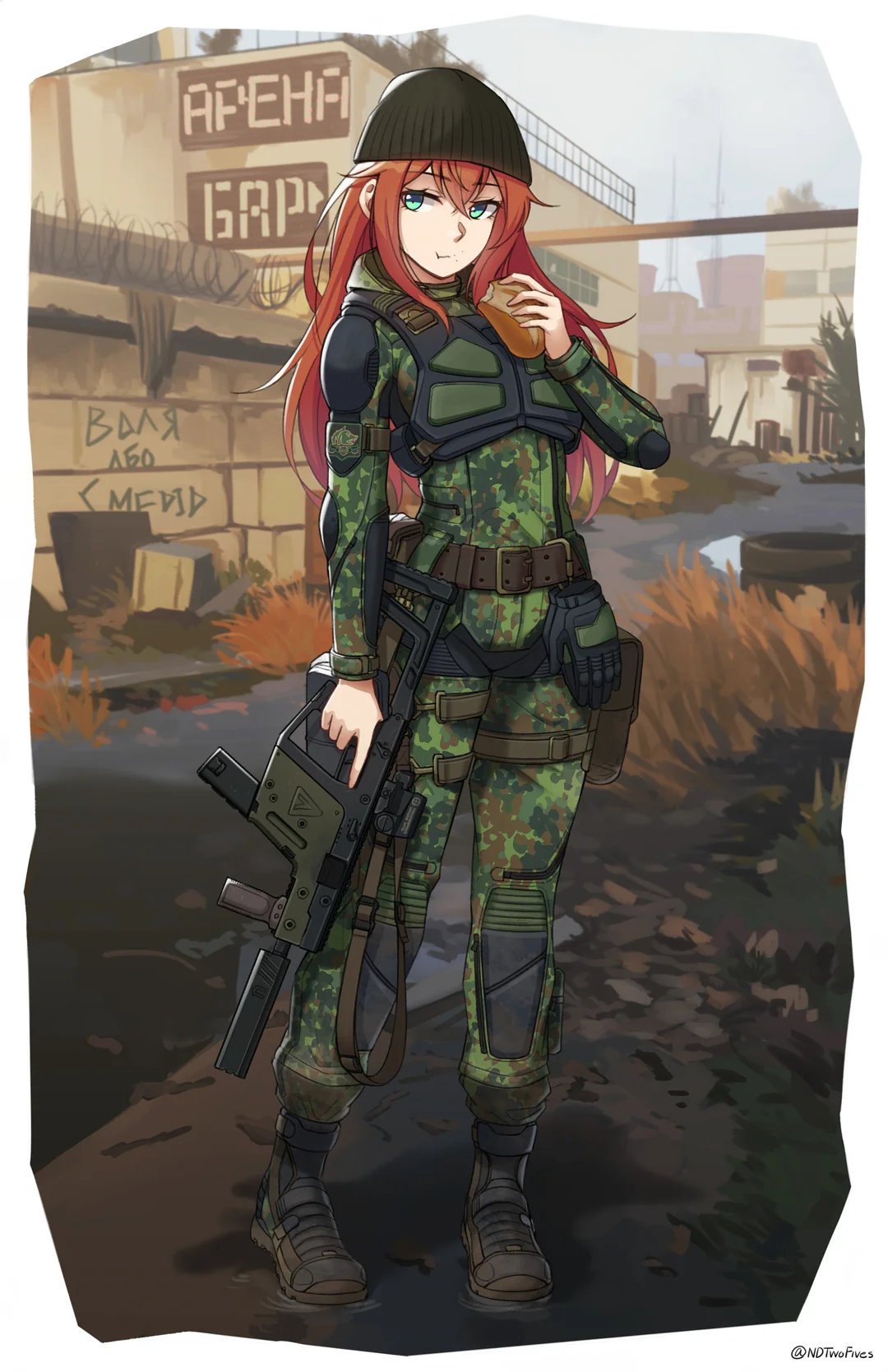 О, а вот и Шустрый со свалки возвращается. Это я ему ЛРку дал кста, с агропрома притащил. Теперь ему броник еще какой подарить надо, а то в своей курточке гоняет бомжатской.