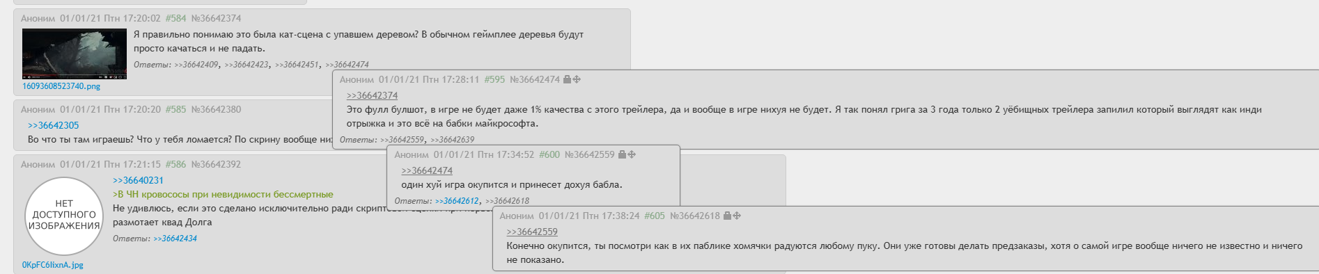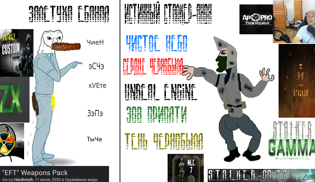Напоминаю, что тред сталкера на сосаче состоит из: Григаплотей - постоянно кидаются на любую критику сталкера 2 им. жени хрюкоровича(становятся едой буквально для всех, да и вообще их забыли спросить). Бюреров-храуфагов - сидят в своих немытых подвальчиках, кидаясь говном во всех, кто решает отойди от канонов(их шизофазии, которая каждый раз меняется) по оригинальной трилогии, особый бугурт на с2 по многим причинам, объективным и/или нет(чаще нет). Билдозомби - стёрли свои 3см приборы на дрочке билдов, пытаясь найти суть ТСС(её нет, или есть?). Полтергейсты-отрицалы - пикируются с бюрерами, им не нравится всё, что есть в с2, но ничего не делают, чтобы показать как надо по их мнению(которое как жопа, есть у каждого). Новопыс-отмычек - вкатились во время с2, особо мягкие становятся едой для первых 4х категорий, когда высказывают хоть что либо, что им не нравится Чады-сталкеры-ветераны - ржут с мутантской пиздобратии и идут дальше, или подкармивают фауну, когда тред загибается.