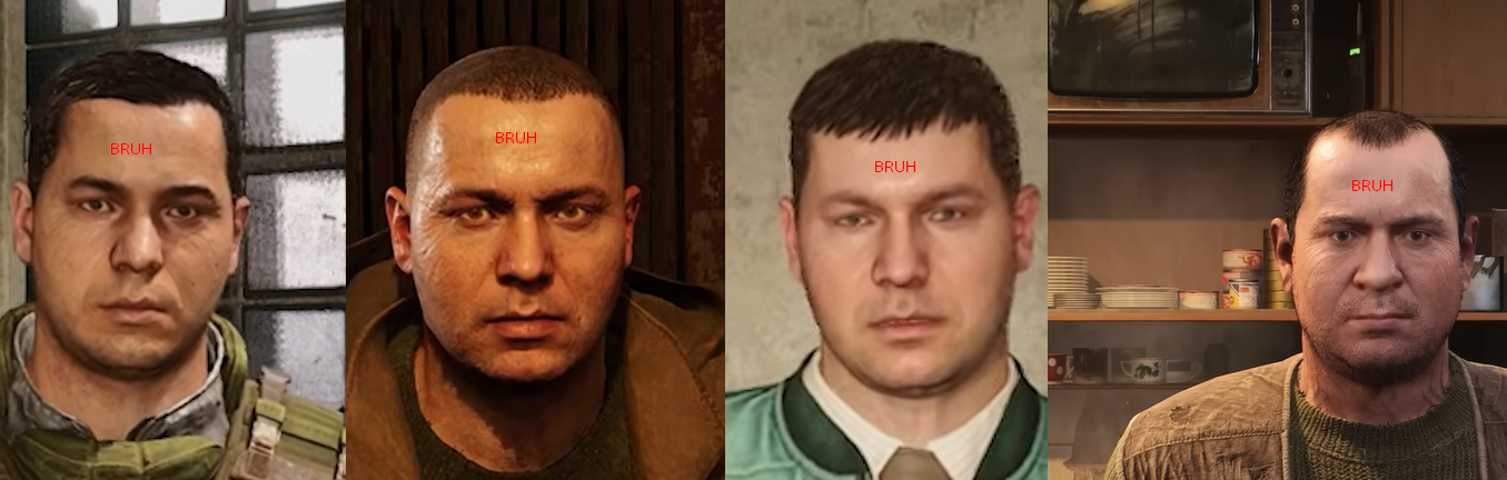 >>50239266 >>50239271 У сталкер 2 худшие еблища. В ТЧ слишком карикатурные и мультяшные. В ЧН также самое, разве что чистонебовцы норм вышли потому что с нуля сделали, но остальное взято из ТЧ. В ЗП лица слишком реалистичные потому что делались с реальных людей и они вызывают эффект зловещей долины.