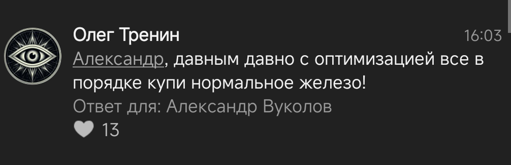 >>50246582 > опустил какой-то бандит? За языком следи, пацанчик. Фенрир уважаемый человек. Ещё услышу кривой базар от тебя - будешь отвечать перед пацанами на кладбище техники