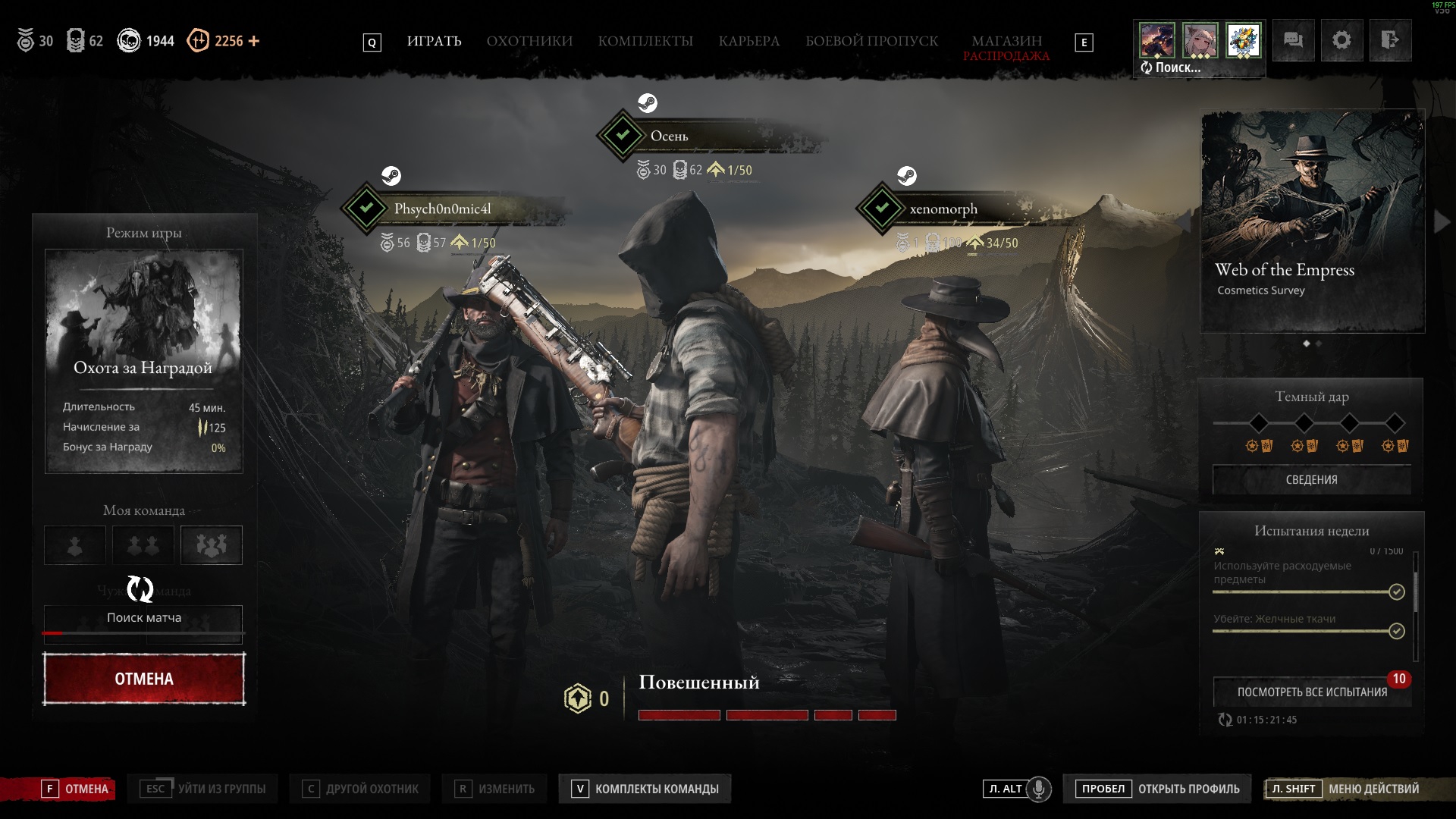 Запустили сервера. Вайпнули сервер тимой. Сходили в центр на паутину. Аппарат 3 раза выдал говно. После выхода с карты начал брать новые перки на охотника и понял, что в этом ивенте перки опять разгоняются катализатором и я как-то проебался и не заметил катализатор в паутине на центре.