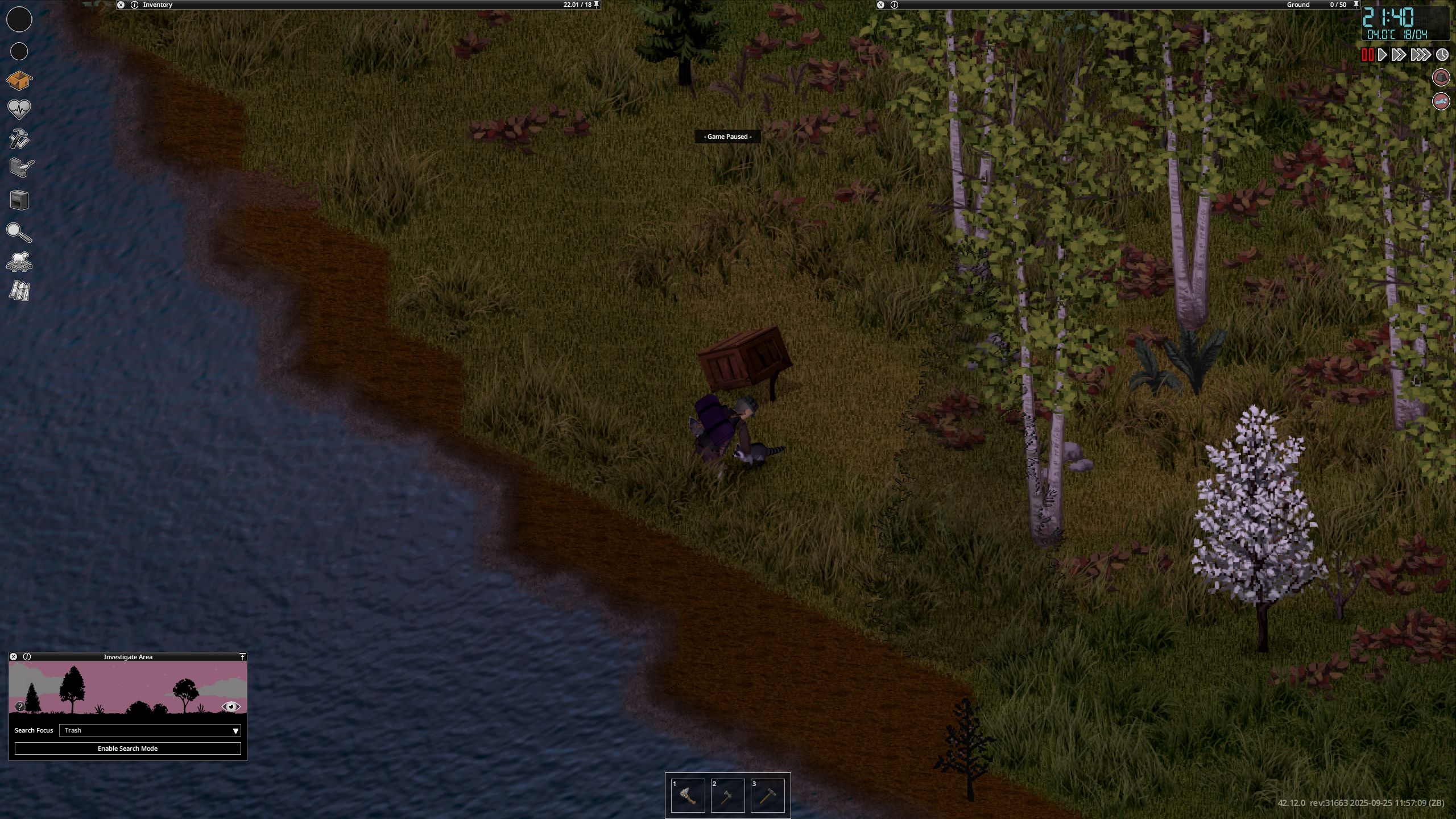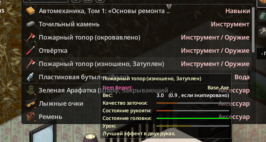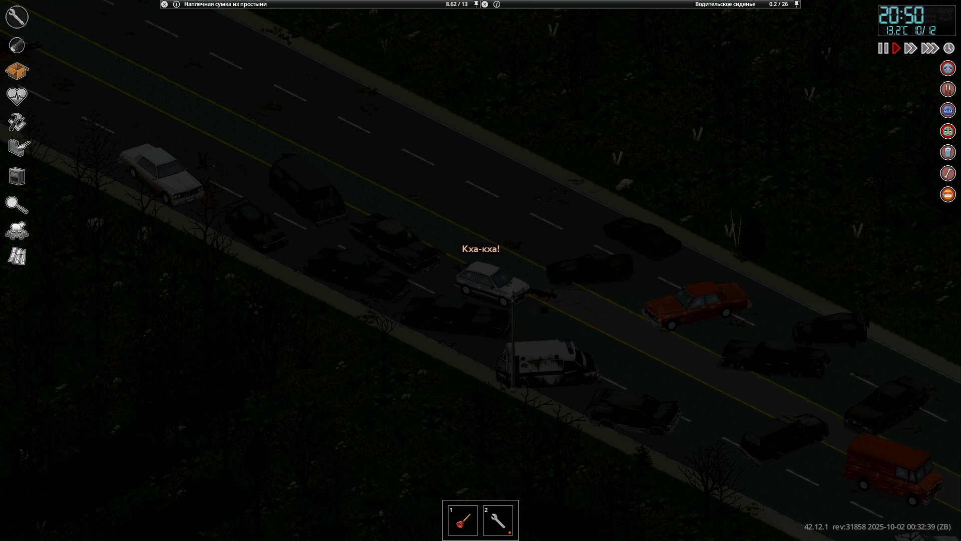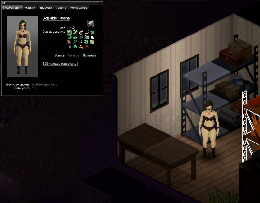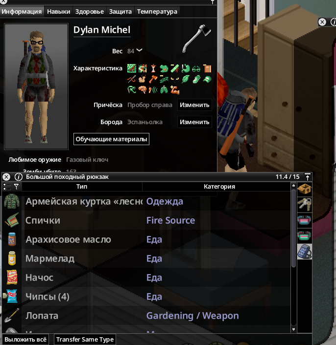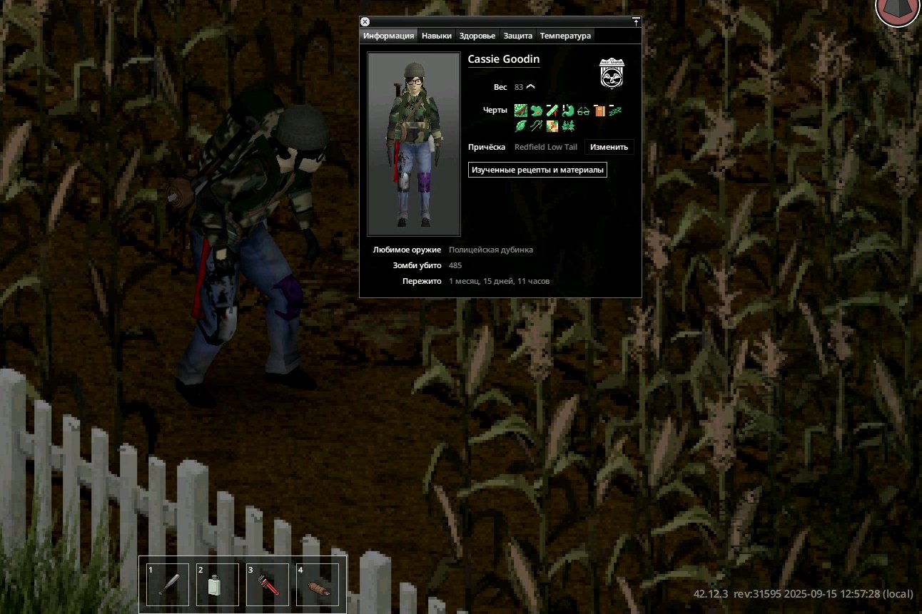 Ясно В переводчик сами прогоните NEW • Reordered hit location damage calculation to occur after body part selection by ballistic • Ranged weapons can now use damage modifiers specific to each body part. • Fixed a shotgun aiming bug. Zombies were dodging the projectiles. When aiming at a specific body part, the other projectiles mysteriously disappeared. Now all projectiles are calculated correctly— every zombie gets what it deserves • These changes impact how shotguns work and feel in the game. • Added cone of vision opacity slider in performance settings. • Updated the cone of vision to use external square lighting when it is brighter than the daylight value, allowing the player to benefit from streetlights and other sources at dawn, dusk, and night. • Updated the lighting system so that rooms behind closed doors are completely dark. • Added more tiles for Breakable Metal Fences. • While resting, the Endurance moodlet now functions as a progress indicator. • Updated pathfinding to allow players to plan paths over climbable walls during "Walk to when wall can be climbed." • Added models, textures and model keys for muzzle flashes. • Players can store bodies in the trunk or in the seats of the vehicle. • Added "required items" and "sort by name" options to crafting Uls. "Sort by name" has been renamed to "Alphabetical (A-Z)". • Cigarettes can be smoked directly from the pack without having to remove them first. • Liquid containers that require opening for consumption will now have a "Drink" option (if the player can open them). Selecting this will execute the opening recipe before drinking. The context menu option is now "Open and Drink" instead of just "Drink." • Canned food that needs to be opened for consumption will now have an "Open and Eat" option, which will run the opening recipe before the eating action. • Similar to double-clicking on food, which causes the character to eat it, now double-clicking on pills and consumables like chewing tobacco will cause the character to consume them. This does not apply to rat poison (to prevent accidental death). • Double-clicking on drinks makes the character drink, opening the container if necessary. • Double-clicking on water makes the character drink if he is thirsty. • Improved automatic highlighting of the first recipe in the crafting search. Now only the recipe selected by the player is highlighted. • Added player-visible poisoning/contamination rating to prevent players from drinking double-clicked liquids if they are poisoned/contaminated. • Added SHIFT + CLICK in the list of available ingredients (Windows style selection). • Added CTRL + CLICK on the header to select everything inside it. • Crafting/building menus now close when the character moves. Added a lock button to the Crafting and Building windows to prevent them from automatically closing when walking. • Crafting/building/entity interfaces now save and restore size/position between loads. • Items marked as unwanted will be specific (individual media or books) and not entire categories. • VHS tapes that have already been watched will have "(Watched) in their name, CDs that have been listened to will have "(Listened). • When trying to light a fire with a carved plank without fuel, the option will appear in error color with a hint explaining that it needs fuel. • An exhausted player trying to light a fire with a carved plank will see an explicit hint and an error-colored option instead of the missing option. • Worms in compost bins now reproduce in winter if the compost bin is considered "indoor." • Individual inventory items can be marked as unusable in crafting recipes. crafting/building (and this tag can be removed). • Added title bar buttons to the loot window footer. • Added contextual loot buttons to remove fire pits and drop bodies on unlit fire pits. • Added filled models for Ceramic Bowl, Glass Jar and Cup. • Improved tooltips and list of possible liquids in the manual crafting tab. • Low-level cookbooks added to kitchen loot • New "Crafty" trait: 30% XP bonus to Crafting skills only. Exclusive to "Fast Learner" and "Slow Learner", costs 3 points. • Added option to browse recipes that an item can be used for by right-clicking on it. • Players can rename containers on tile objects. • Added "possible ingredients" feature to the Construction Menu. • Color bars in item tooltips now use "good" or "bad" color according to benefit or penalty (running speed, combat, discomfort, etc.). • Inventory items that affect Stamina, Fatigue, or Stress when consumed now use colored bars instead of numbers. • Items that affect Vision or Hearing when used show colored bars (bad or good), not color scales. • Hay can now be removed from hay blocks. • Added text "No recipes available if there are no recipes. • Slight optimization when evaluating whether an inventory item is a revenue input. • More rigorous assessment of whether a rubble tile can be "simply collected". • Added filled templates for Fountain and Plastic Cups. • Added recipe for making mirror. • Cookable foods show cooking time in the tooltip if the player has a 5+ Cooking skill. • When viewing the trunk inventory from outside the vehicle, there will be a top button to close the trunk. If the player has the key, they can also close and lock it. • Animal corpses now appear highlighted in the Animal Designation Zone Ul. • Cake Pan can now store liquids. • Added a crafted version of the Glass Jar and updated the recipe to craft it instead of the looted version. • Added background to radial menu text for better readability. • Microwave/oven buttons renamed from "Cancel" to "Close". • Controller focus set to profession list when opening character creation. • Controller focus set to character panel when opening creation screen. • Added visual transition when using left shoulder to switch Ul 
