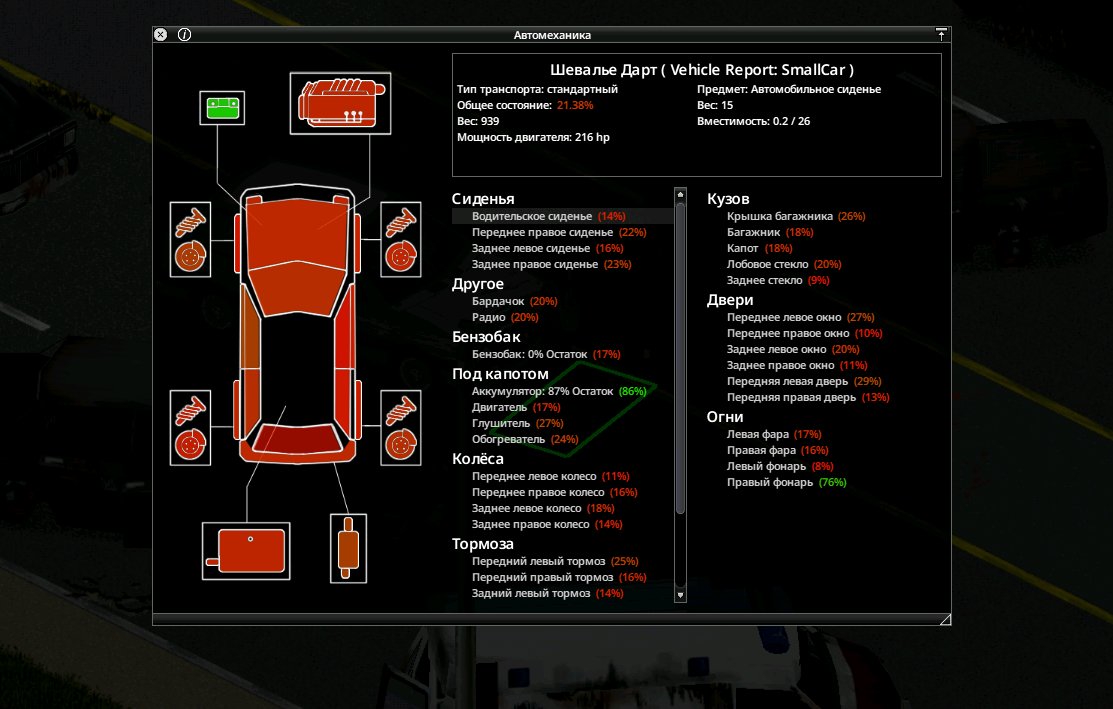 Интересно, а есть какие-нибудь модики на модификацию машин? Ну чтоб можно было металлический бампер наварить и давить зомби без урона для капота и т.п. фичи? Вроде бы в ванильном 41 билде таких фич не вижу.