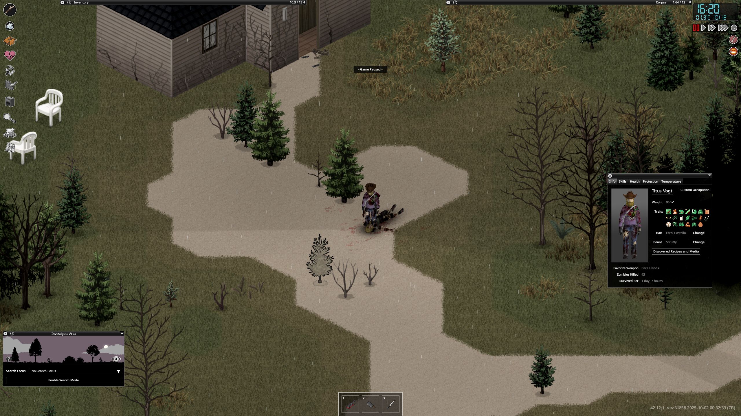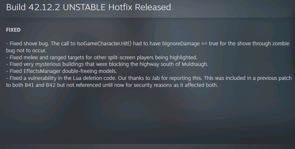 Занюхал 42.12, в "Просто не ваш день" стартовый дом теперь не горит код красный код красный! Думал баг, еще и нашел в тумбочках пинцет для извлечения стекла из промежности, создал новую игру - опять не горит дом, пинцета правда не нашел, нашел целый швейный набор няху! А вот с раной в паху теперь на карачках передвижение очень медленное, больше не поубегаешь в полуприсяде от зомбей. Ну а так - еда в доме или в соседних какая-нибудь будет, вода в раковинах все еще остается, у меня только второй день начался - а уже и простуды нет, и рана зашита. Правда зомбей нормально так вокруг, на северной ферме вообще 3 группы по десятку зомбей ошивается, ушел от туда кукурузным полем и заночевал в стартовом доме. Кароч двоякое чувство, вроде и оказуалили, а вроде и с новой системой спавна зомбями должно быть насрано даже в глухомани, куда раньше убегал спокойно выживать с опасными вылазками в населенные пункты к которым подготовка уже приключение.