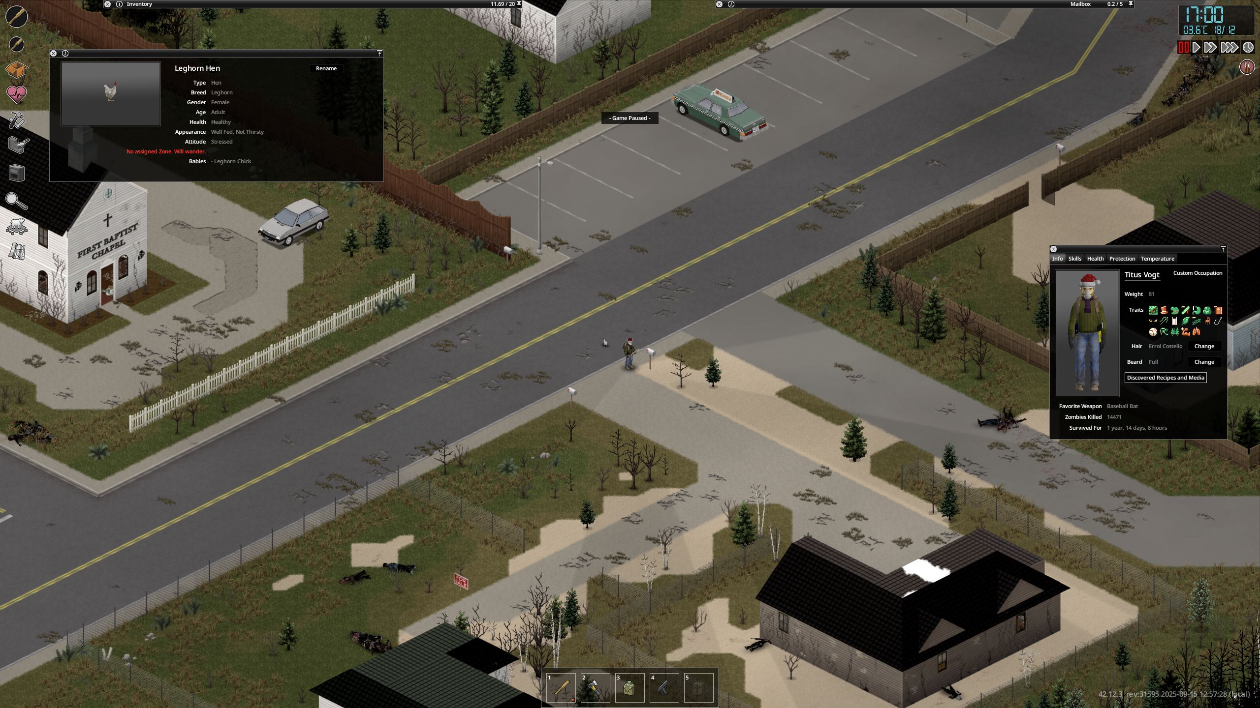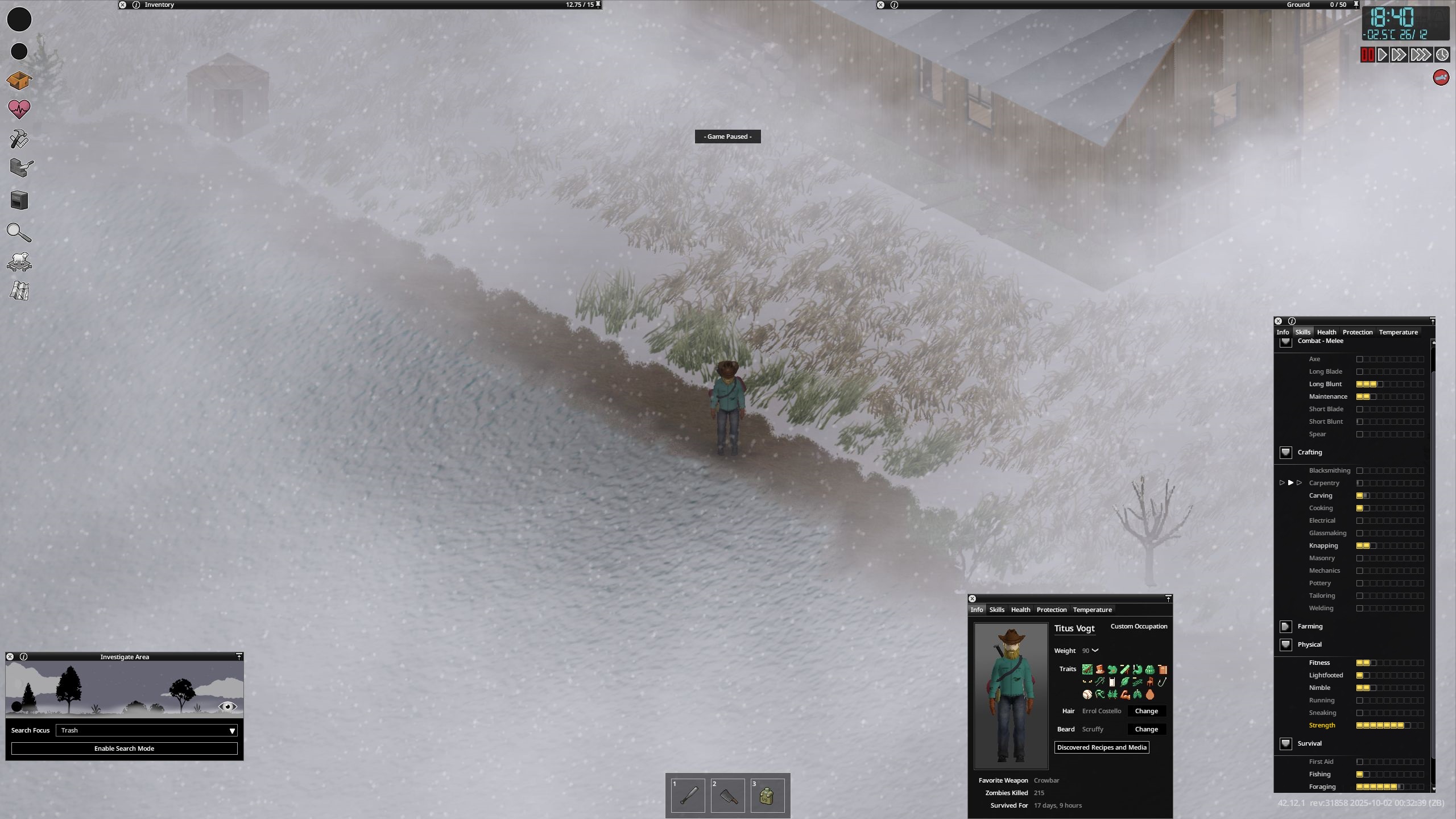 >>50711507 Это 42 билд? Чё, зима в Кентукки действительно с -15 бывает, лол? Я пережил уже одну в 41 билде, там дней с минусовыми температурами было очень мало, снег часто таял даже посреди зимы. Я спокойно в кожаном плаще с тонной одежды под ним так же бегал. Разве что майку надеть ещё пришлось и шлем на более теплый сменить.