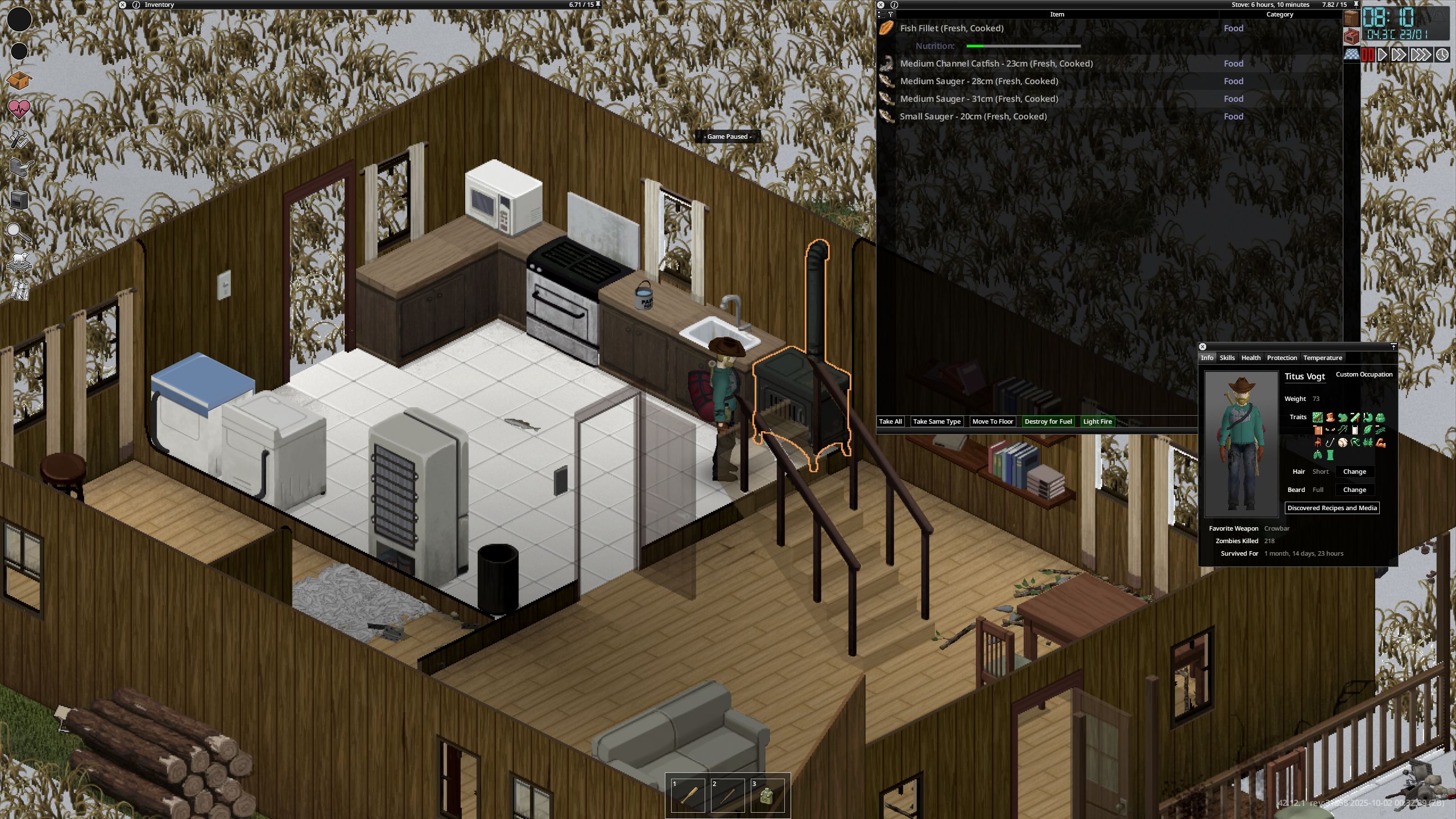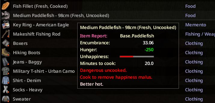 Все, нагриндил 4лвл Рыбалки и даже зимой на CD DA изредка начали ловиться средние рыбки, которые разделываются на филе, а не только мелкашка-жри-целиком. С филейкой можно и супец делать, что я и сделал, и за день отжирания получил заветную стрелочку веса вверх. А через неделю вообще наступит весна и Собирательством начну насекомых находить на наживку, так что жить можно и в лесу.