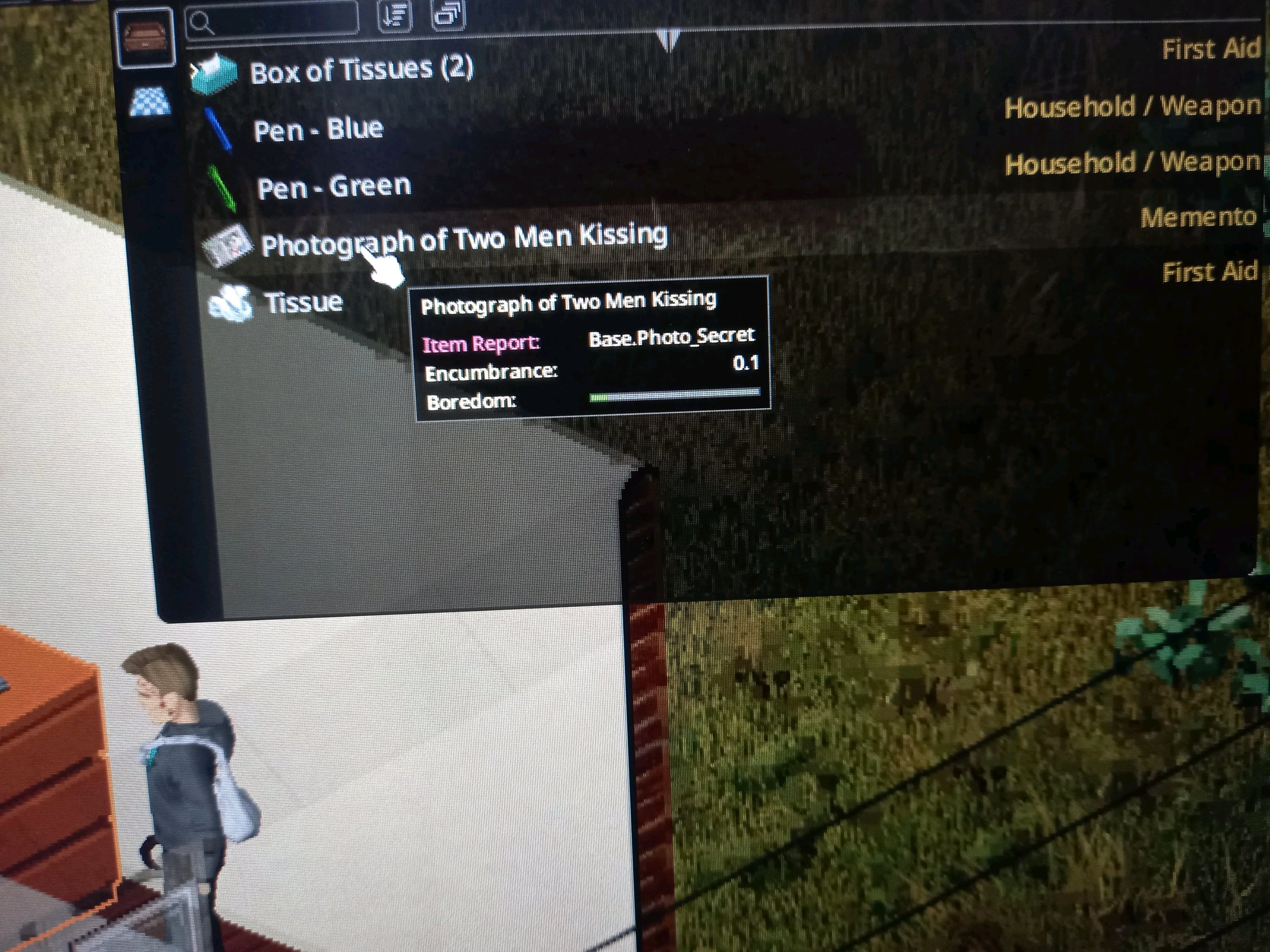 >бездонный воровской карман >засунуть в рюкзак всего лишь 15 кило хлама, но голый мужик без проблем несёт на себе телевизор Игровая условность. Да и плюс там же дебаф с перевесом накладывается, далеко не убежишь. У меня вот вопрос в другом. Какого хуя вместо того чтобы блять просто выбросить телевизор, кулер с водой и т д из рук когда на меня из кустов резко как понос выбежала орда из 10 зомби, мне обязательно нужно его установить как мебель? Почему просто нельзя сбросить на землю?