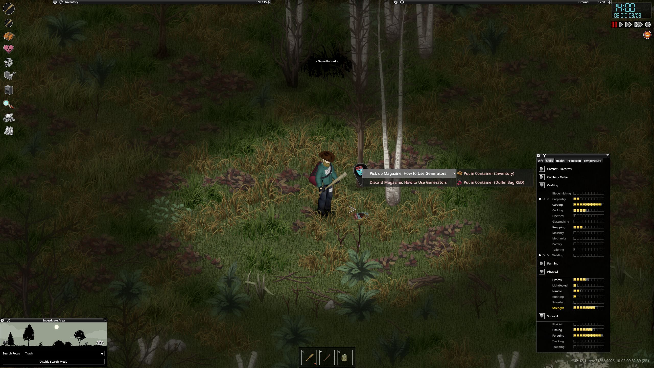 >>50246551 Всегда ставлю коэффицент на пассивный навыки х3. А все остальные навыки с книжками качаются быстро. Ну еще надо в настройках не отключать прокачку навыка от разбора мебели. Пусть она качает навык как и качала всегда, что вообще за хуйню придумали в 42 билде хз, я отключаю.