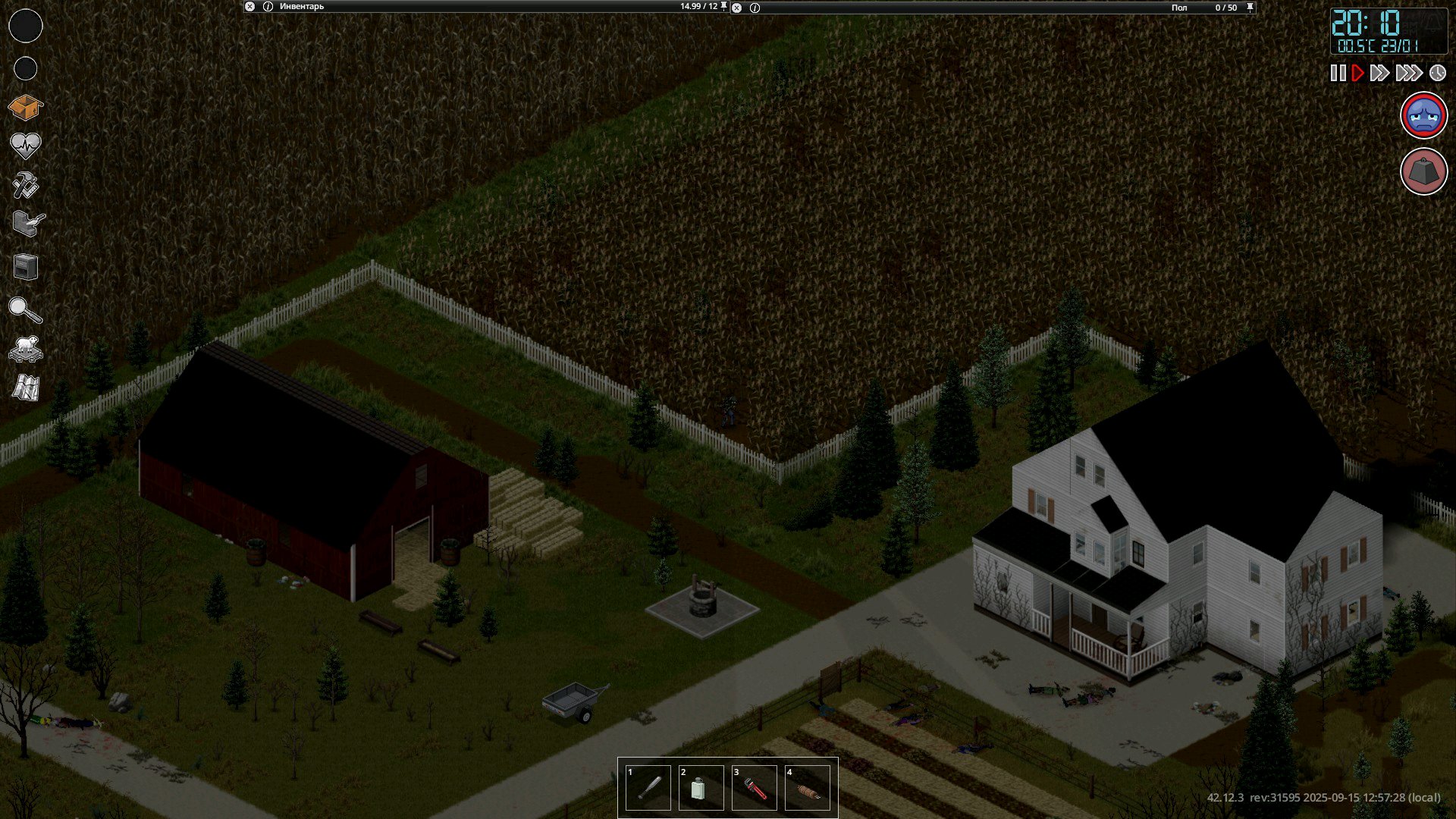 >>50746644 Ферма между складами и Риверсайдом https://map.projectzomboid.com/#5694x5732x2291 Уже давно выживаю здесь. Мне это место нравится само по себе, да и в плане удобства. Рядом река, озеро, практически бесконечный лес, две заправки, склады, трейлерный парк, свалка машин на запчасти. Прям ахуевшее место. Мы тут с пацанами в мультиплеере тоже выживали кста.