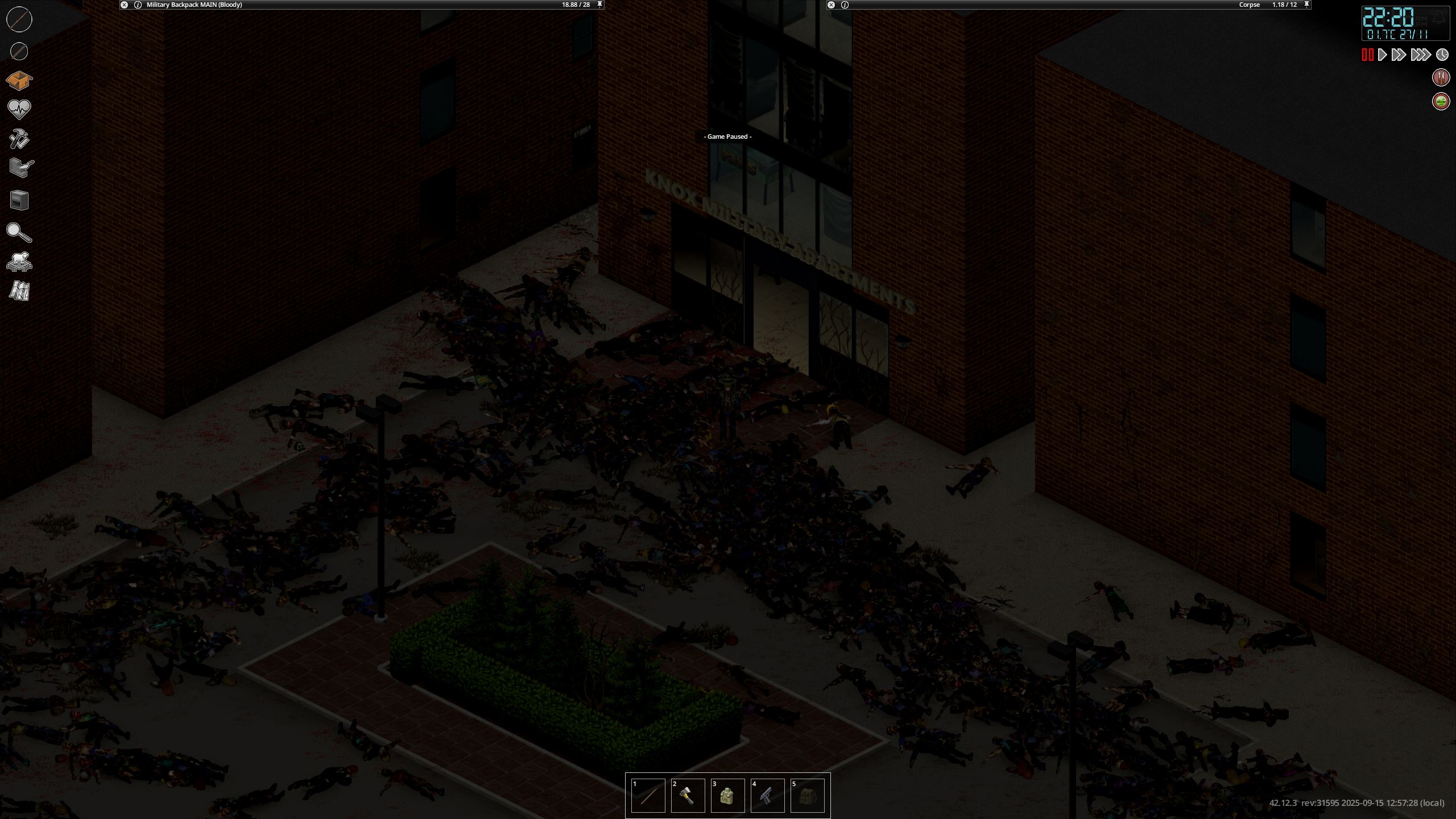 >>50695088 Я хз что произошло. Не трогал настройки зомбей целую вечность. И тут вдруг внезапно игра наспавнила ОГРОМНУЮ кучу зомбей, натыкав их группами через каждые 5-10 метров в давно зачищенном районе, отрезав меня от озера, где я рыбачу. Их настолько много было, что я даже клонов (полностью одинаковых на вид) видел. И они продолжали спавнится даже на обратном пути к базе. Я такой бойни даже на старте игры не видал, их тут в жизнь в таком количестве не было никогда, пришлось аж одну тачку бросить и бежать, роняя кал, неслыханное дело (потом два дня прорубался к ней обратно). Подёргал в панике настройки песочницы и вроде бы вырубленный множитель распространения подействовал (хотя раньше был дефолтный и всё нормально было), они больше не спавнятся.
