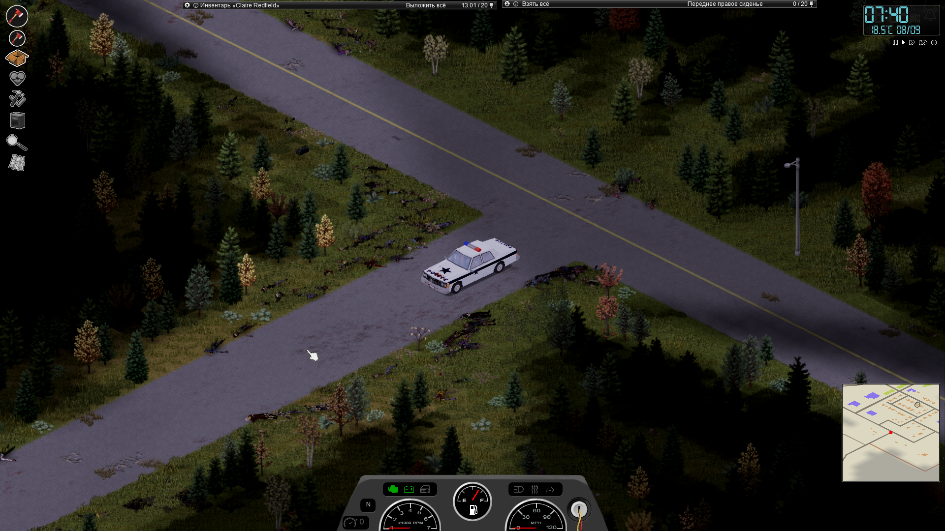 Четвёртый день. Пришлось вернулся на ферму за водой. Сливал бензин в маленькие кастрюльку. Около полудня двинул в путь. Пересёк Малдро без серьёзных происшествий. Один раз засмотрелся на вещи на сидении и чуть не въехал в дерево. Несколько раз двигатель глох. Удалось остановиться и забежать в ресторанчик. Набрал воды, сожрал испорченную еду и таракана из мусорного бака. Настоящая удача - в багажнике фургона канистра. Бензина не набрал, пришлось быстро уезжать. Надежда найти бензин на перекрёстке не оправдалась - зомби слишком много, времени нет. Впереди Роузвуд. В машине тепло, надеюсь, что простуда отступит. Иногда вствечаются мертвецы, но не очень много. Вечером взорвалось колесо, бензин на исходе. Кушац хочется, заправка это единственный шанс. До города рукой подать, буду ждать утра и идти пешком
