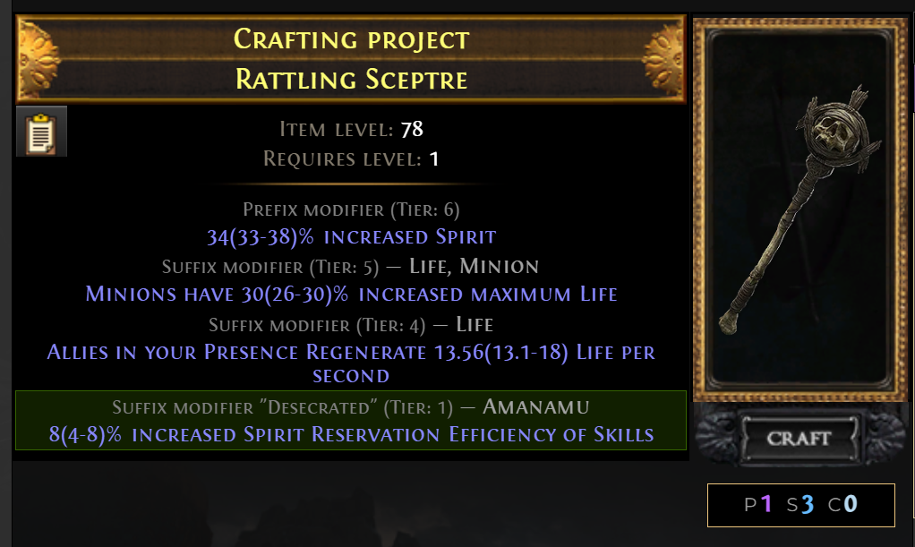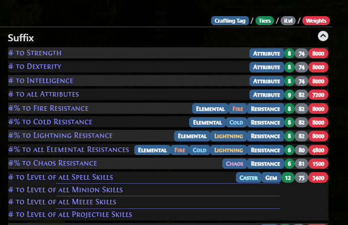 >>50252577 Ну да, iLvl - айтем левел. Для +3 к камням(т1 суффикс) надо чтоб у шмота был 75 илвл, а для т1 отдельных резов или для атрибутов уже 82 илвл нужен, поэтому в идеале для крафта 82 илвл предметы требуются