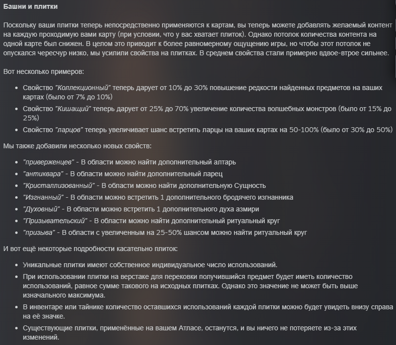 >You no longer need Towers to use Precursor Tablets, instead, Tablets can now be placed into the Map Device to add their bonuses directly to your Map. БАШНИ СОСАТЬ!!1