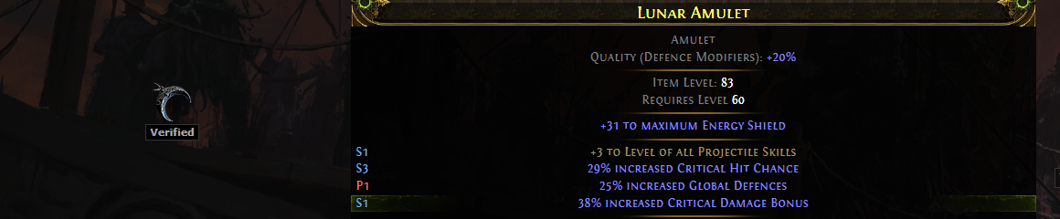 >>50273308 Все аффиксы синие, а +3 к проджектайлам другого цвета? Это значит что его в процессе крафта специальной валютой зафиксировали на предмете? (типа чтоб другие свойства можно было поролить, а это чтоб оставалось неизменным?)