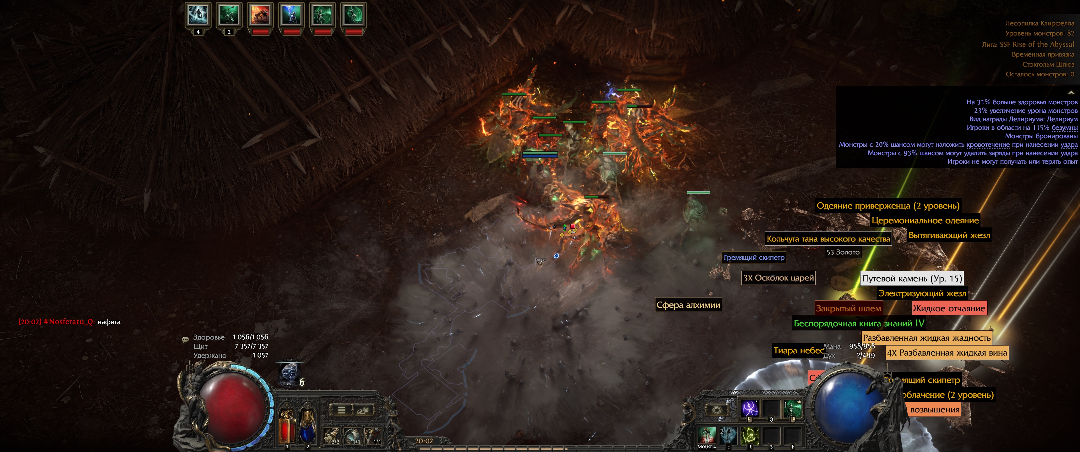 >>50251082 желтые с 4 модами, потом хаос на кол-во мобов в паке и мажу делириум. Я за 3 таких мапы поднял почти полтора левела. >>50250976 А не лучше взять шлем с ес и пассивкой на амулете? >>50251088 Да я всего пару раз падал с куры и только потому, что перс застревал в объектах и не сразу замечал. >>50251112 Предлагаешь сразу уйти в крит версию? Видимо об этом речь, но шмотья на крит у меня нет и не будет.