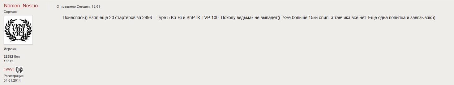 >>50256744 >Есть одна единственная механика, которая реально может поднять гейплей в танках на новый уровень - подарки после боя >Самый минимальный уровень награды, который я вижу - ты хвалишь игрока, и он не попадает в бои, где есть противники выше него уровнем Инжой ер +50к ботов в боях, лол. Специфика игры не та, хотя идея хорошая.