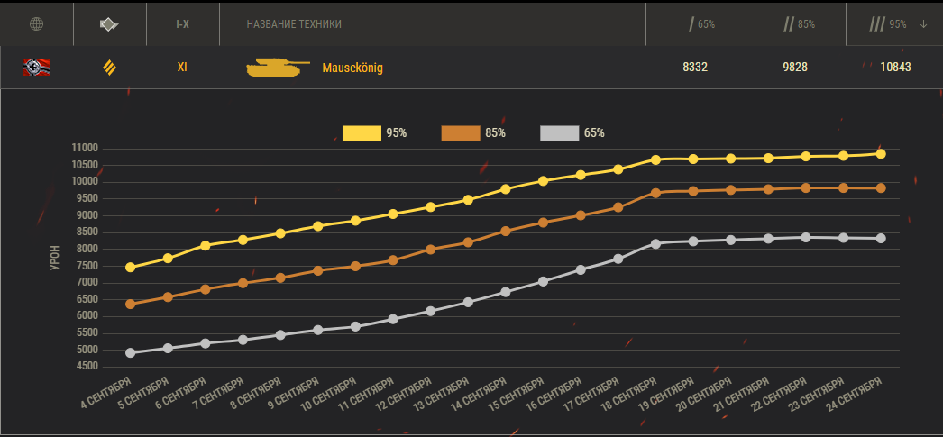 >>50266074 У меня кроме песка. Есть ещё +20 шт. 10 лвл. А требования там +2000 средухи пока что наблюдаю в приглашениях. Вн8 тоже пишут +3500 за сессию вн8 у меня +4000 а средухи на топаз порой стоит +4000 урона Для меня сейчас цель набить 3500 вн8 +-100 с запасом. А потом подкорректировать на десятках количество боёв и средуху по 4000 сделать