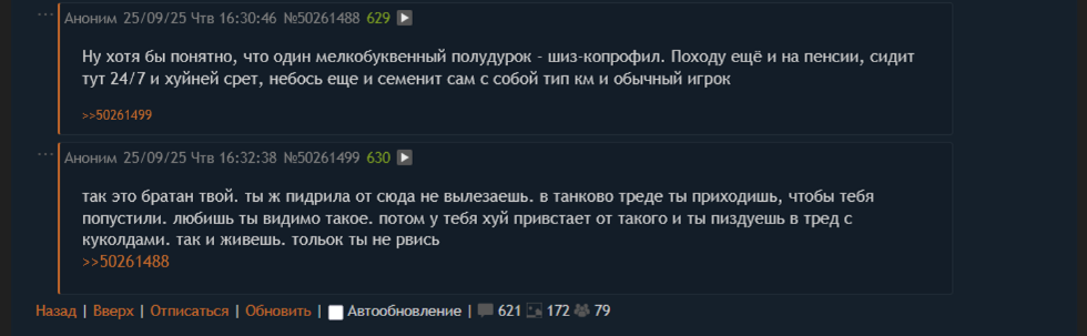 >>50256829 >Тем более Добродеев заявил, что планирует собирать обратную связь. Вот она - мне не нравится то, что я увидел Ну такое, у большинства игровых компаний с этим есть проблемы, глиста не исключение. Другой вопрос как это исправить. У меня были знакомые тостеры и они такую дичь рассказывали я ебу. Там вся суть тестирования танков была приехать в точку, пукнуть пару раз, написать отчет. А тут что? Нарисовано говно, да и кому не похуй, лично мне поебать как и большинству ЦА. Та самая ЦА не заходит на сайт, они новости узнают от юши или в клиенте игры. А там уже найдут кнопку в бой. >Потому что это уебище не понимает с каких хуев его ЗП формируется. Он как раз таки понимает, лол. Его ЗП формируется из нихуя, у людей не будут спрашивать нравится ли им говно которое нарисовали за пару часов, люди в игру играют, а не оценивают качество работы визуальной работы ивента который 10 дней продлится и это справедливо.