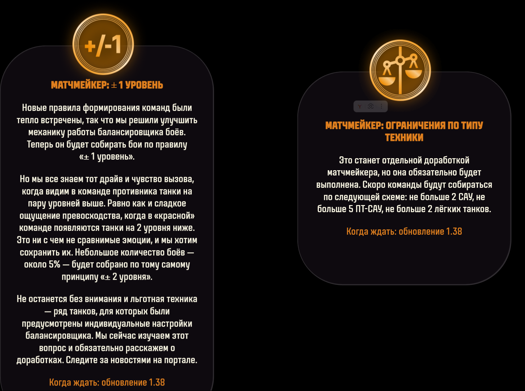 Какой КМ там пизданул, что +-1 лвл боев вернут? >Практически все бои будут одноуровневыми или собраны по правилу «± 1 уровень». И только 5% — «± 2 уровня». Эти уебки будут крутить 5%.