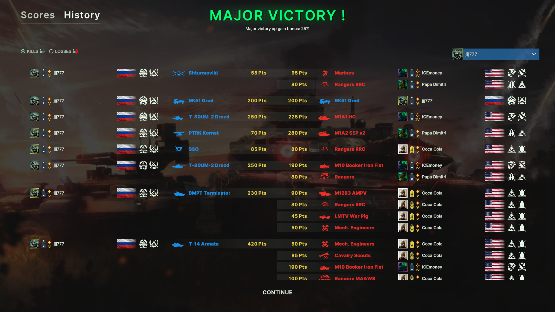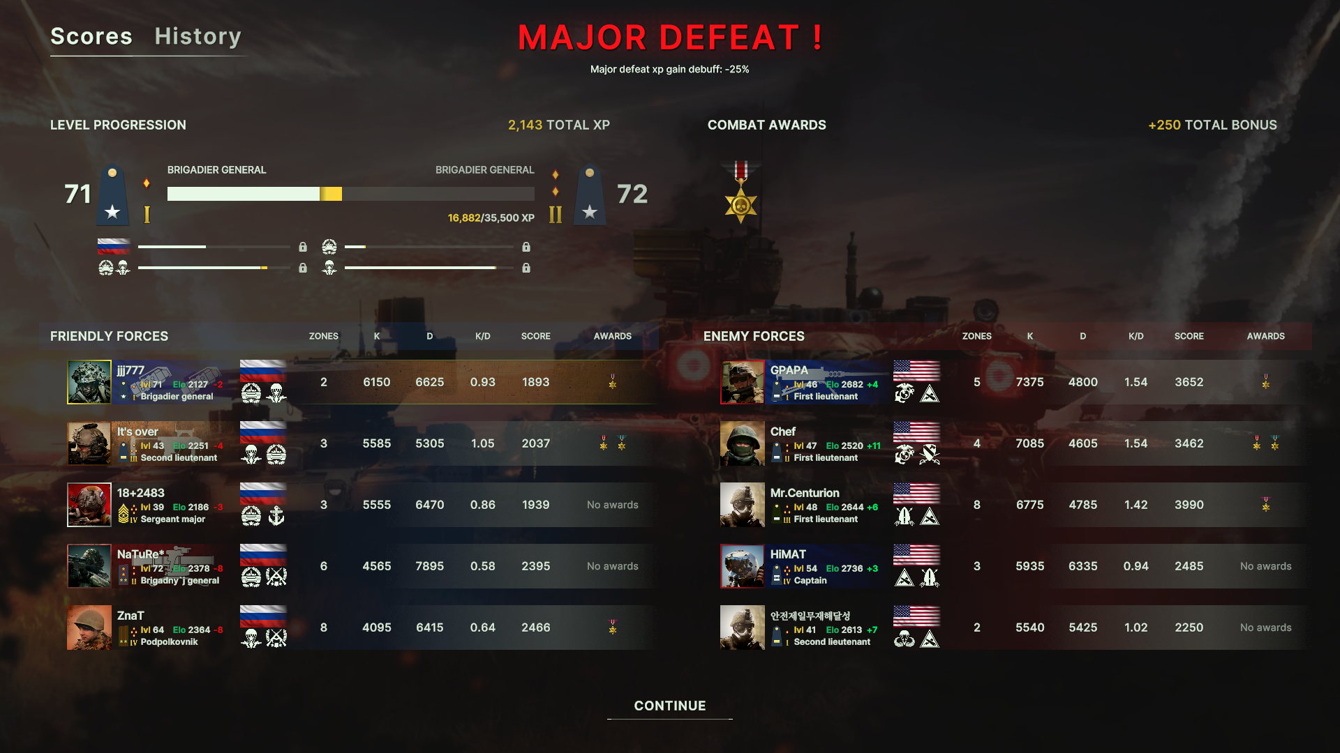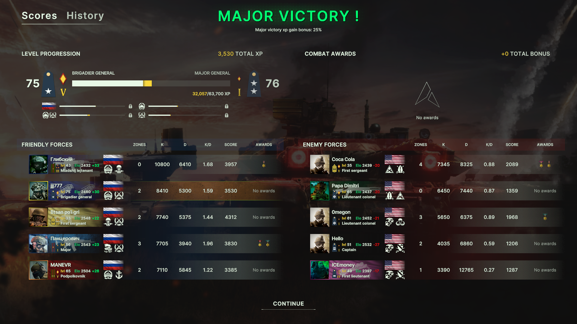 А знаете что самое интересное? Мы бы проебали этот бой, так как все 3 фазы РФ контролировали больше точек чем мы. Но вместо того чтобы сидеть на жопе ровно и вынуждать атаковать НАС, они продолжали накаты на нашу оборону и просто фидили на 2-3 ступень получение очков за фазу.