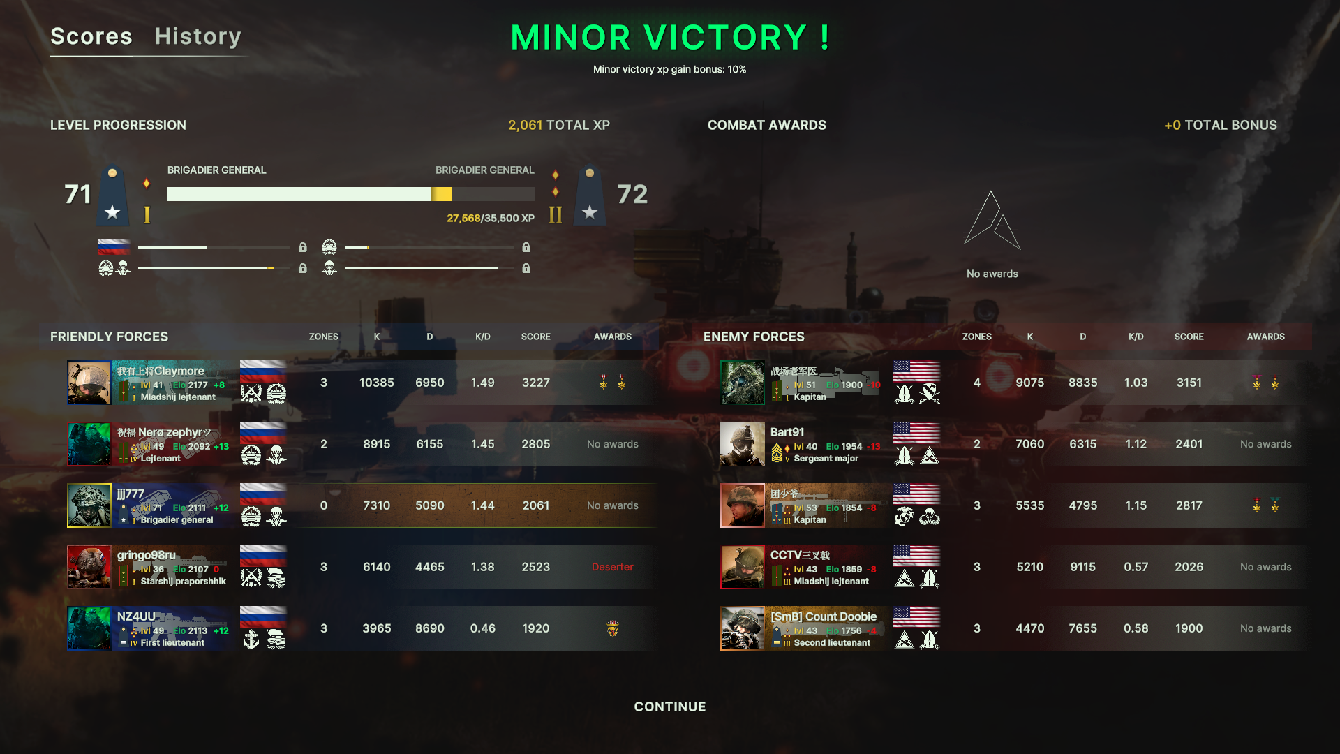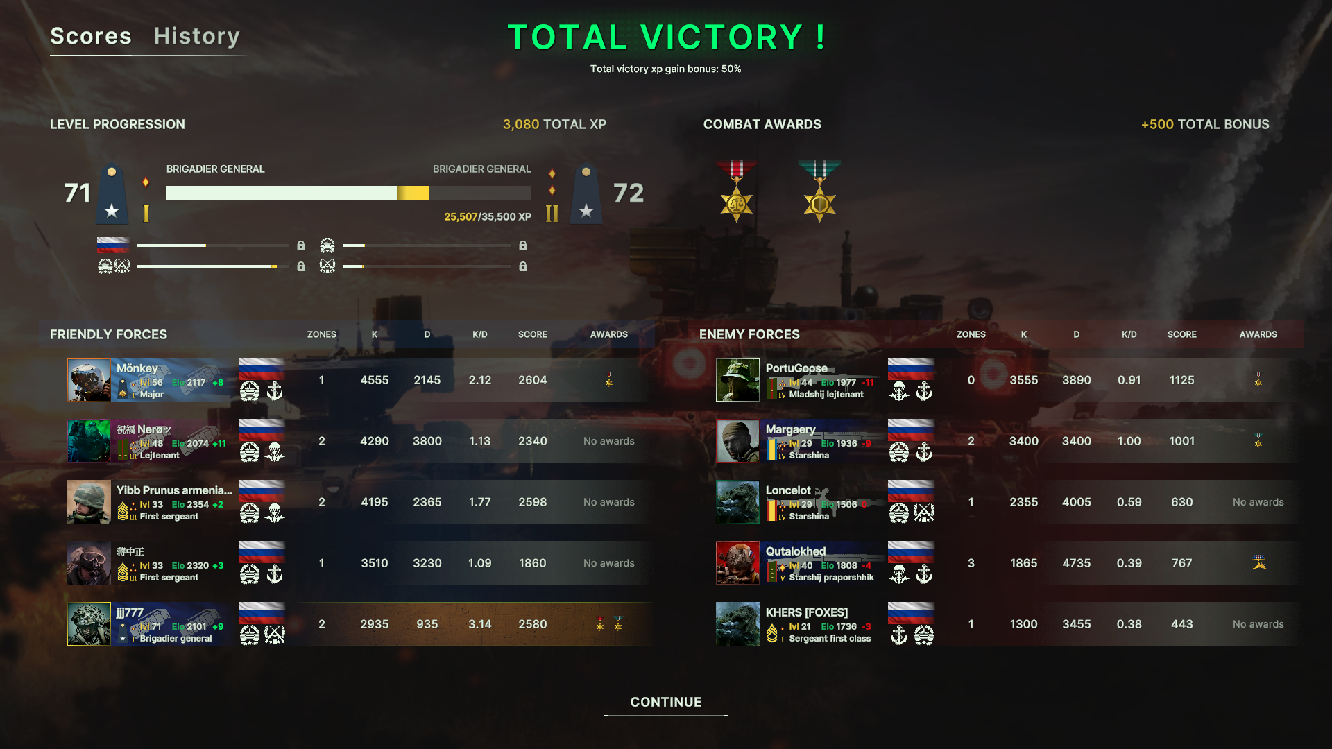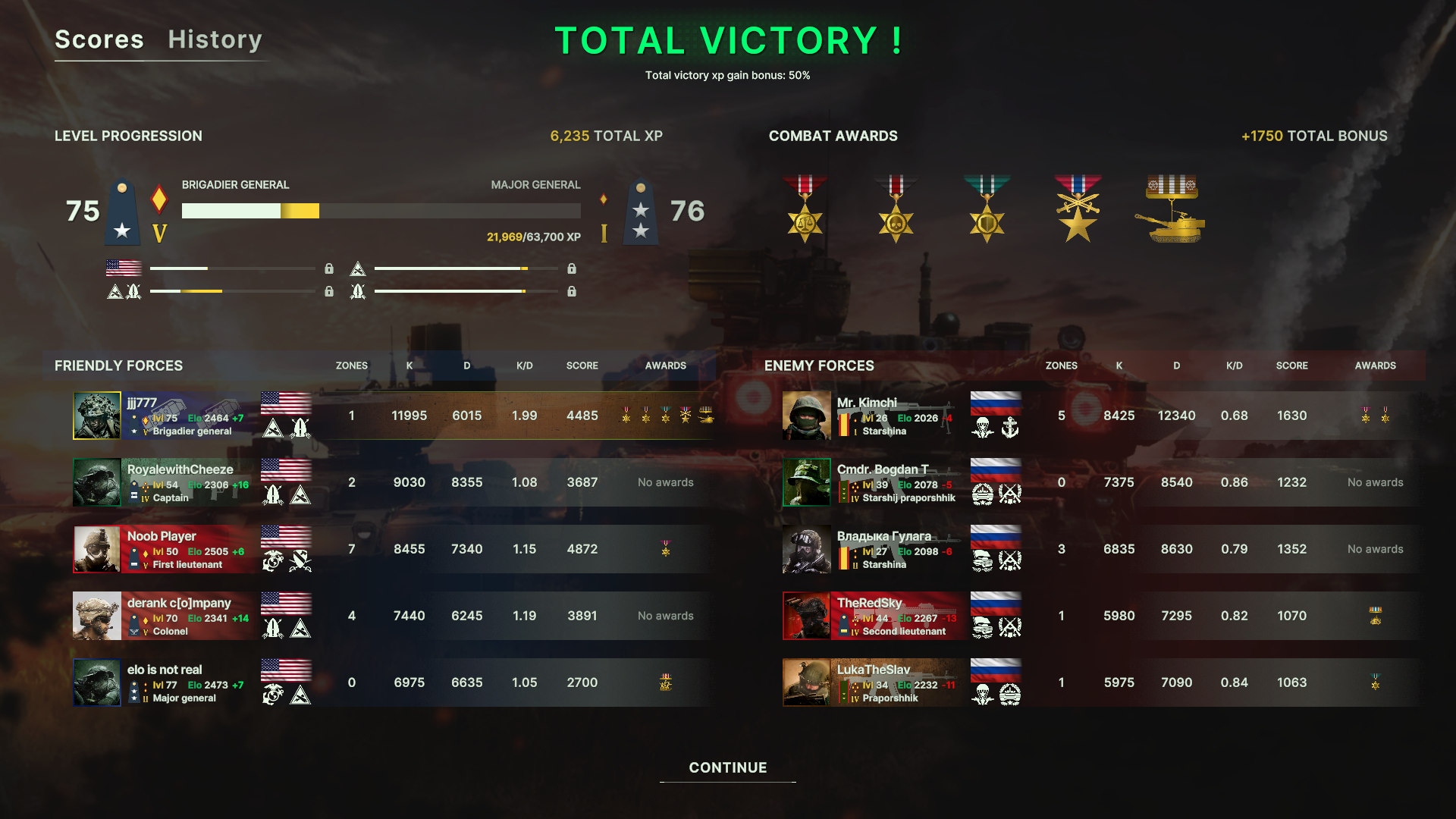 А знаете что самое интересное? Мы бы проебали этот бой, так как все 3 фазы РФ контролировали больше точек чем мы. Но вместо того чтобы сидеть на жопе ровно и вынуждать атаковать НАС, они продолжали накаты на нашу оборону и просто фидили на 2-3 ступень получение очков за фазу.