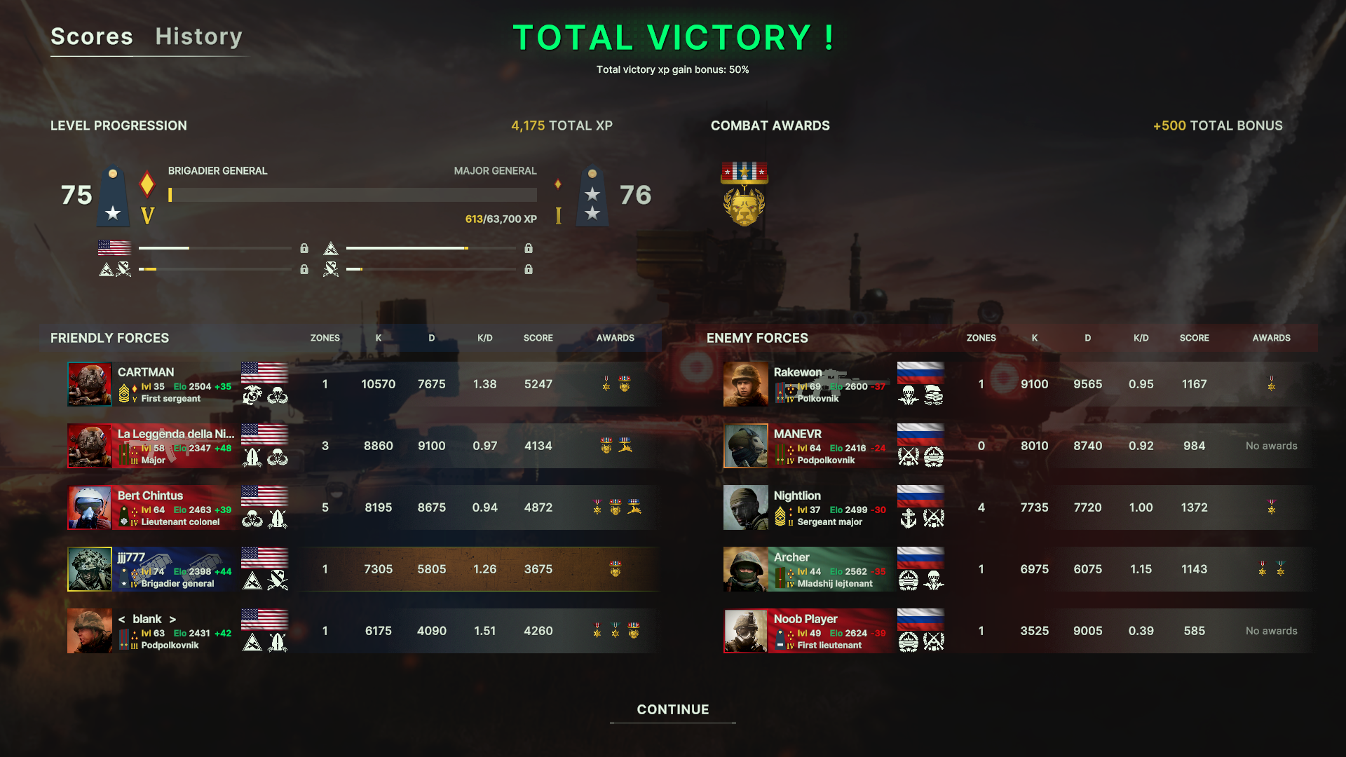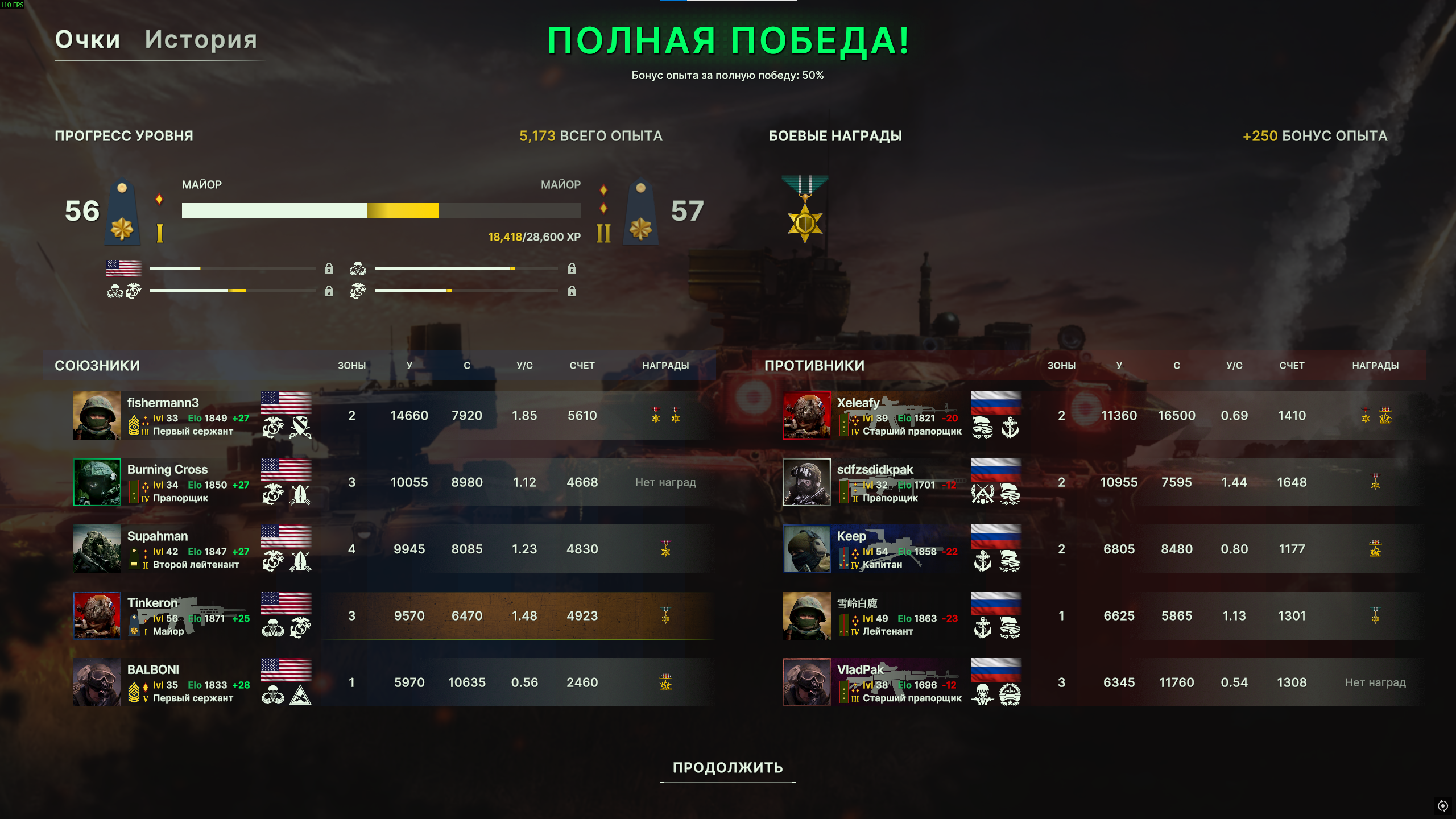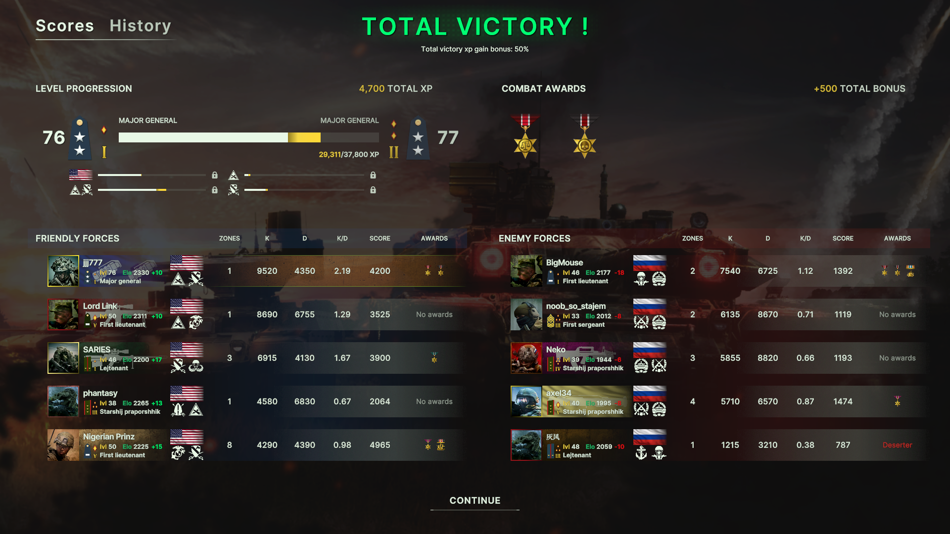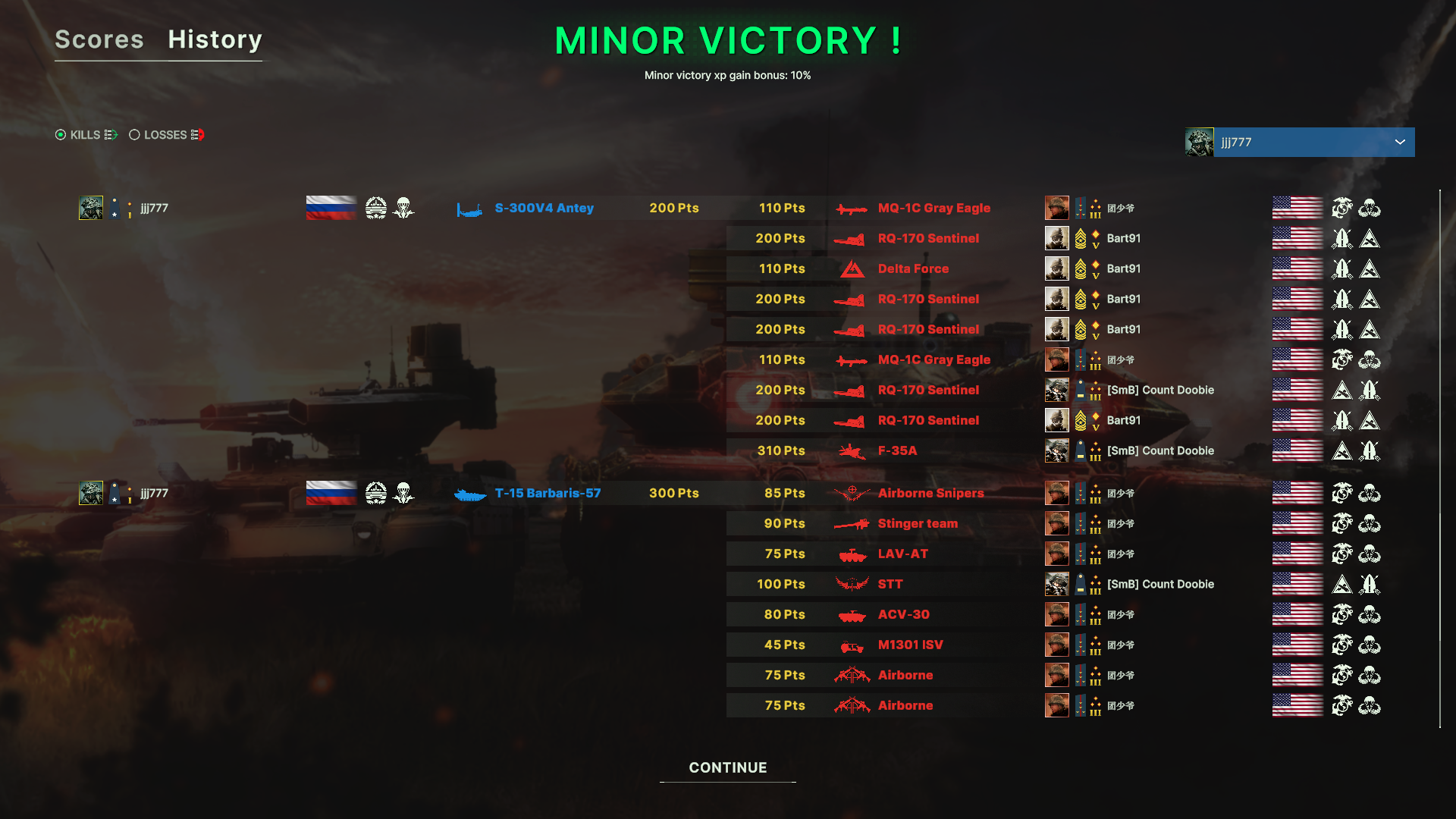Впервые так много наубивал наверно, видимо карта крохотная, единственная с островом. Интересный мачтмайкинг с челиком 1900 vs 800, наверно тащил кого-то наверх, но играл он отвратно кста, спамил самолёты и арту, несколько раз выезжал по земле и при этом такое кд. Меня сминали в ноль один раз в середине игры, оставалось пара суплаев, снайперов и коалиция, горел sudden death, был во уверен в поражении.