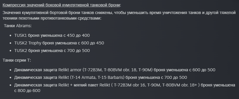 Так то вроде и оправдано, но так то пиздец, просто так с наскока эту хуйню не вызовешь. >>50255707 >ррс это антивсё но близко = идеально для леса/высадки на ебало И нахуй это надо? Чтобы что блять? Убить блять страшных черных беретов которые сами нихуя кроме пехоты убить не могут? И соснуть хуев у любой бехи/бтра? Спасибо, я найду чем в лесу ебнуть черные береты, а вот чем ебнуть беху/бтр найти сложнее. >ближайший аналог - спецназ ат, но вот незадача, он стоит 140 и умирает абсолютно без шансов от двух ррс Он так то умрет и от 1 РРС заканченной в вашу клозовую хуйню, ну должен во всяком случае, но он сделан ВНЕЗАПНО УБИВАТЬ ТАНКИ, А НЕ ПЕХОТУ.