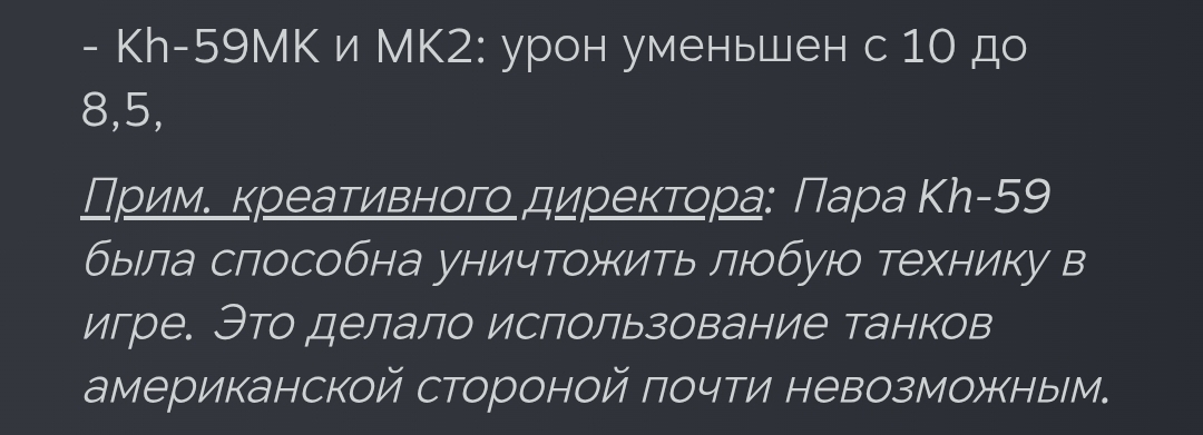 >>50417708 За рф мне кажется слишком дорога кидать противорадарки с самолетов. Там только один норм +-вариант есть на су27 чтоле, где он за 240-270 выходит. Мне кажется есть смысл либо в довесок на бомбер их вешать, чтоб одновременных целей больше было, либо на вертолетах у морпехов их таскать и у респа бп пополнять постоянно. А так во время вылета челы просто радар могут поотрубать и все, ну и из 4 хорошо если 1 долетает. Вот 2 вертолета почти гарантированно убивают цель с радаром или 2 за один вылет, тк 2+2 одновременно запускают. Потом через минуту можно повторить и это почти ниче не стоит.