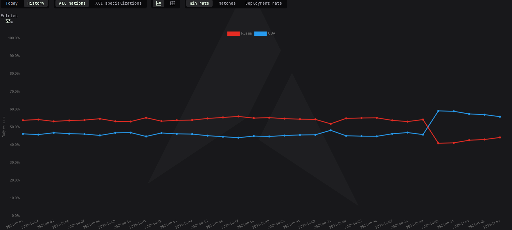 Как будто наигрался за рф, больше нет этого ощущения соревнования, что меня могут выебать и я должен потеть. Каждая катка рутина и я на автомате уже вызываю нужный стак юнитов и ебу сша. Даже абрамсы уже не помеха, хотя буквально в авгусе я итт каждый раз орал про нерф абрамсов.