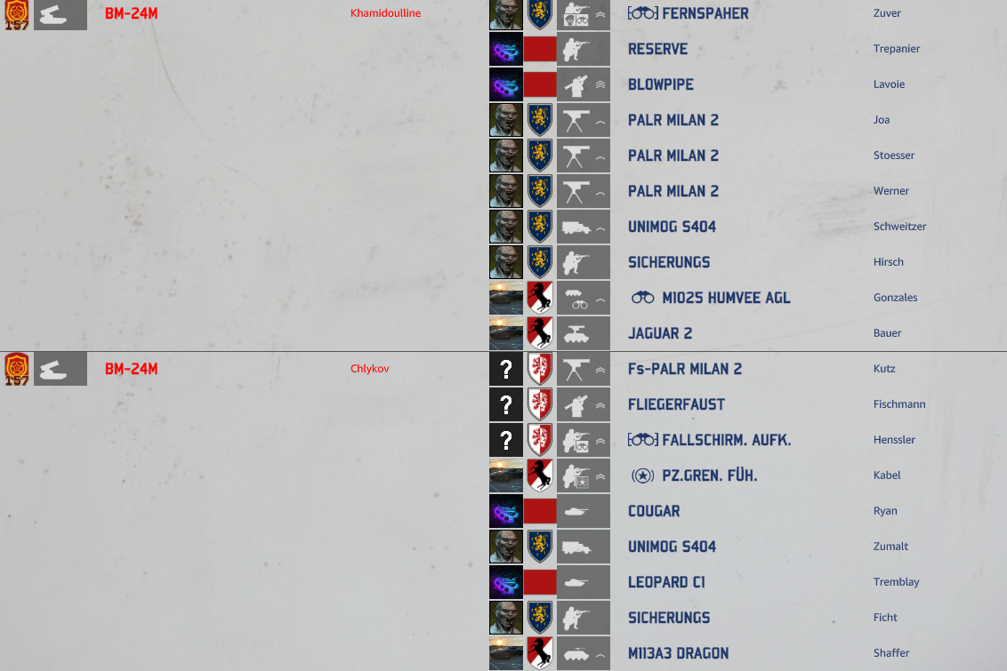 >>50449526 Ща вылезет Сериул с доводами, что БРМ имба и не контрится. А количество боекомплекта у ПТУРов (2) у russkies так и должно быть (один в каз, один в дым).